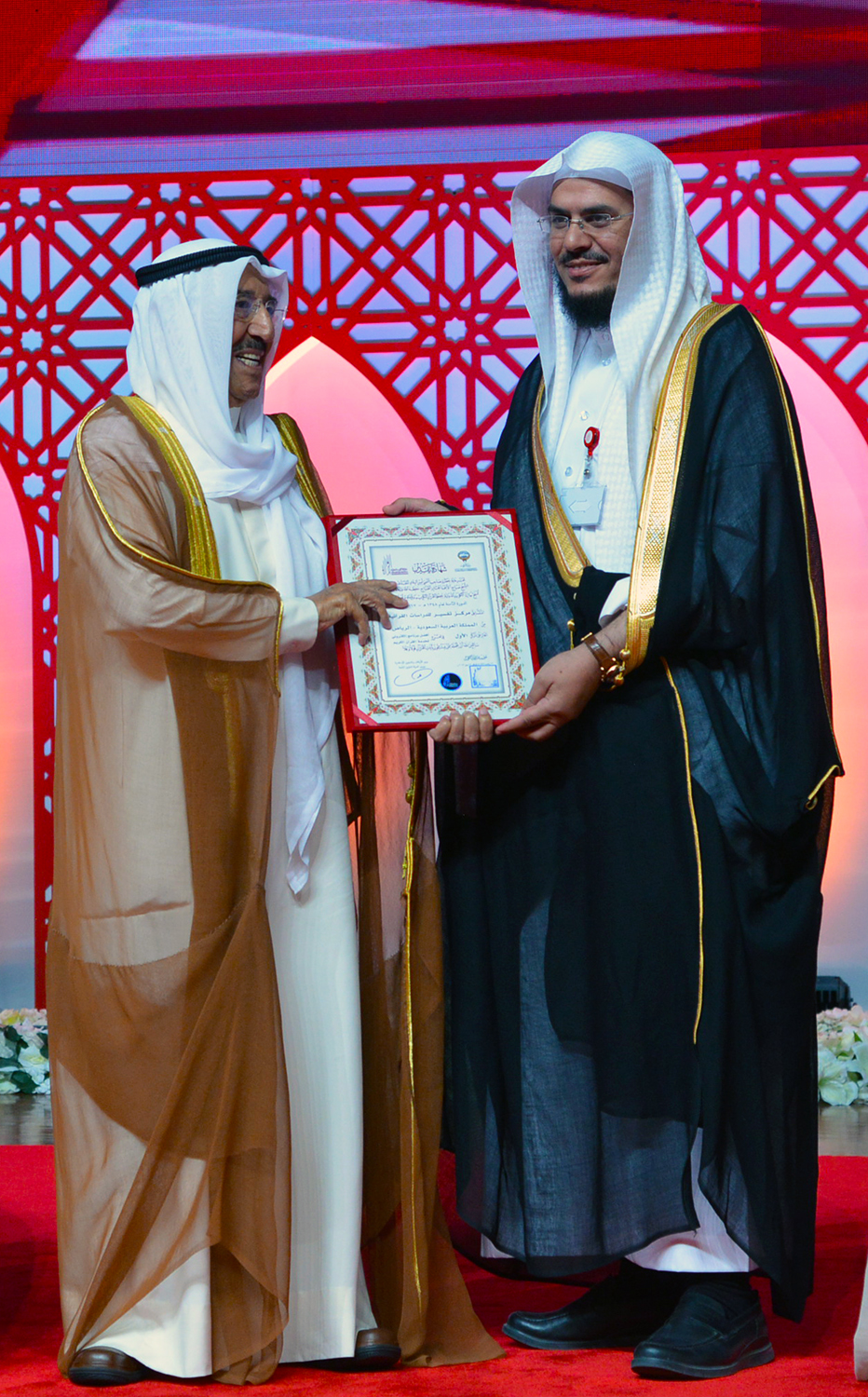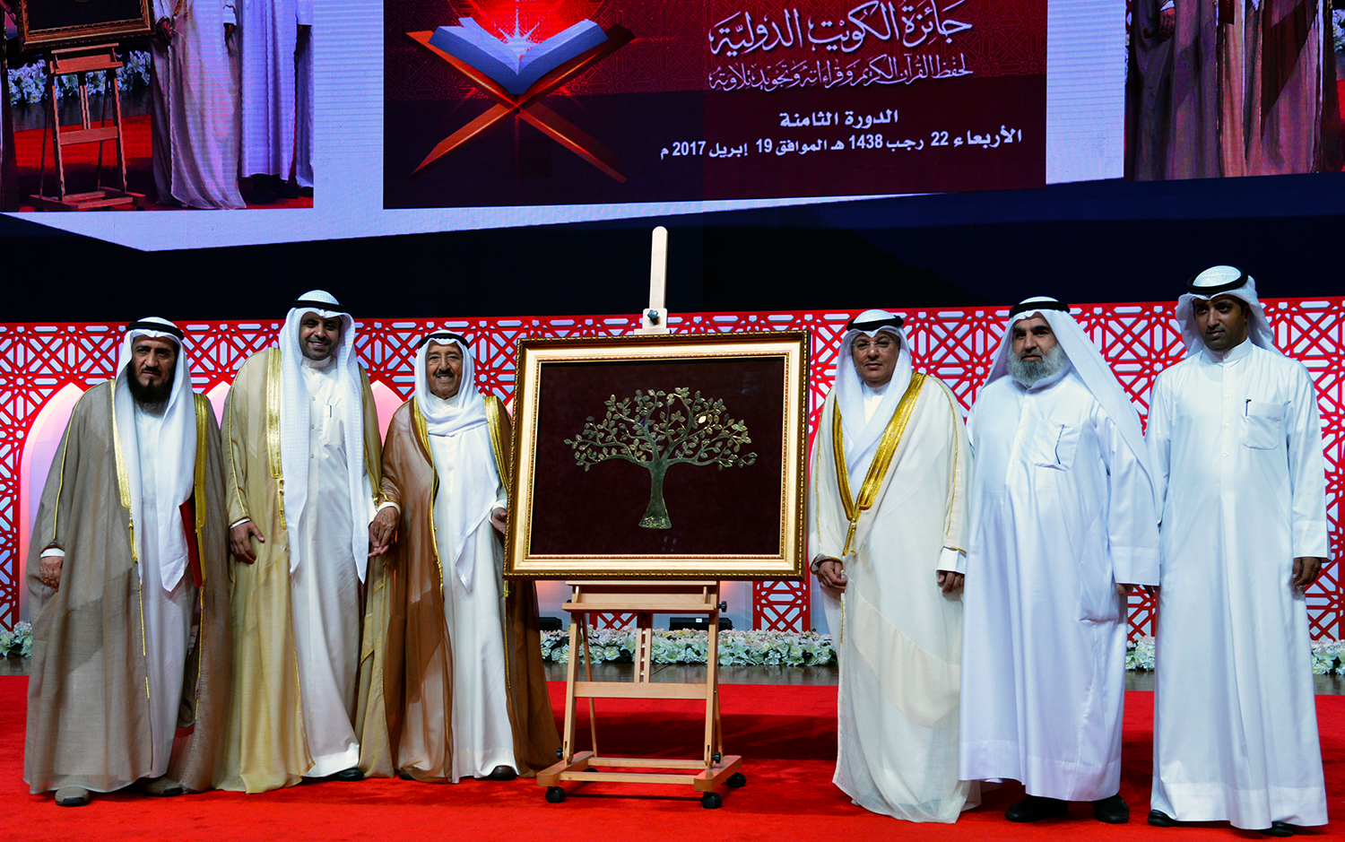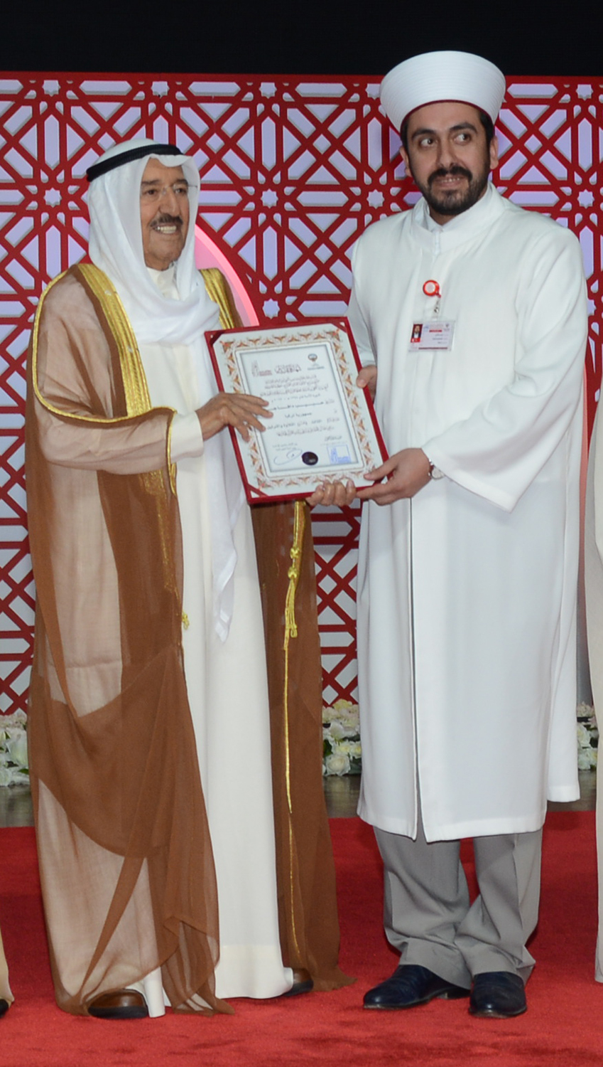 Upon arrival, His Highness Sheikh Sabah was received by Minister of Awqaf and Islamic Affairs and Minister of State for Municipal Affairs Mohammad Al-Jabri and members of the contest's committee.