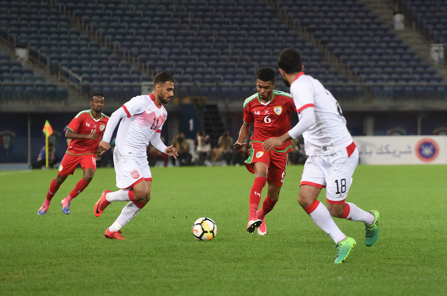 The Oman team dominated the first half and managed to advance in the 28th minute through a corner pass deflected by Bahraini player Mahdi Abdeljabar to settle into own net.