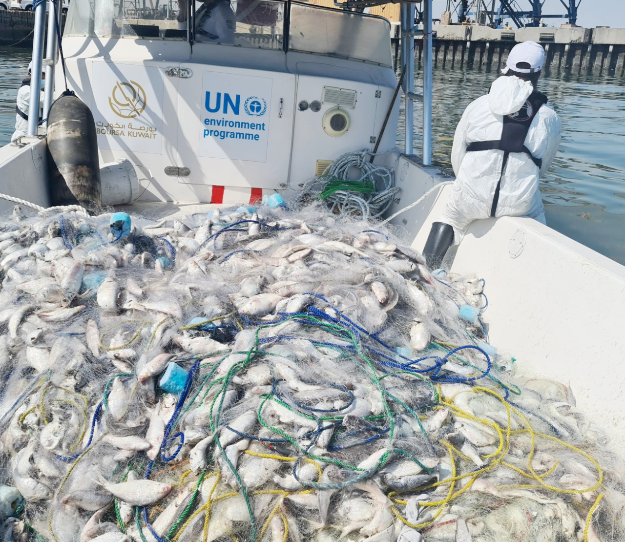 Al-Fadhel added that the operation was completed with the assistance of Kuwait Ports Authority, Environment Public Authority and Public Authority of Agriculture Affairs and Fish Resources, where boats were prepared to lift these hefty nets weighed-down with dead fishes and sea animals.