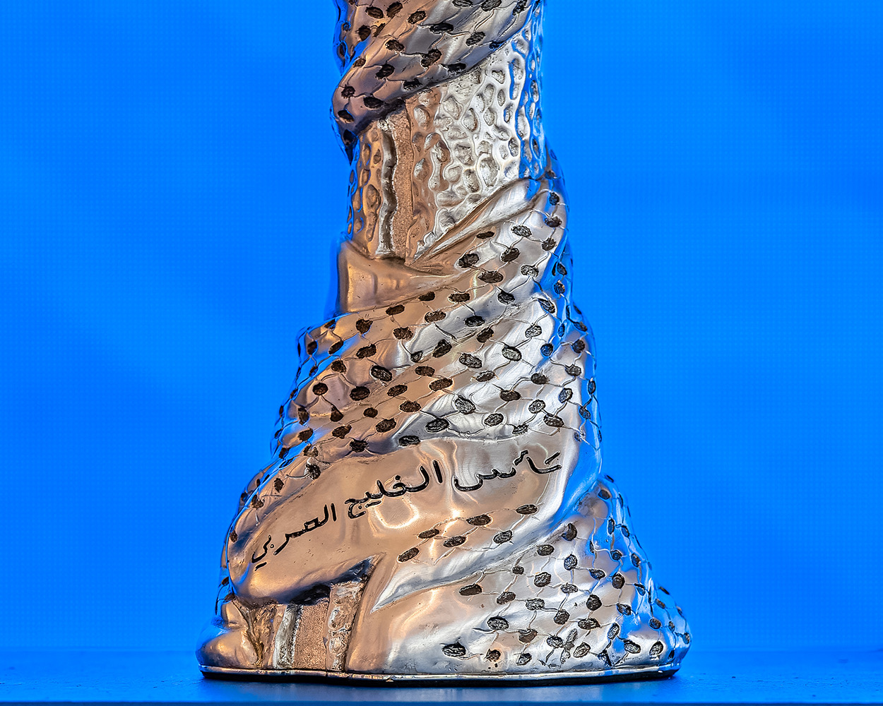 The top of the trophy is embraced by the Gulf shemagh (headdress) to reflect Gulf people-to-people cohesion