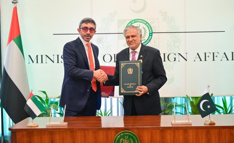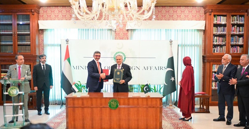 According to the Pakistan Foreign Office, the two sides held delegation level talks led by visiting UAE Deputy Premier and Pakistan's Deputy Prime Minister and Foreign Minister Ishaq Dar here in Islamabad. The two leaders signed two MoUs for cooperation in the field of culture and the establishment of a joint committee for consular affairs. They also witnessed the MoU signed between the Federation of UAE's Chamber of Commerce and Industry and Federation of Pakistan Chambers of Commerce and Industry for the establishment of UAE-Pakistan joint business council.