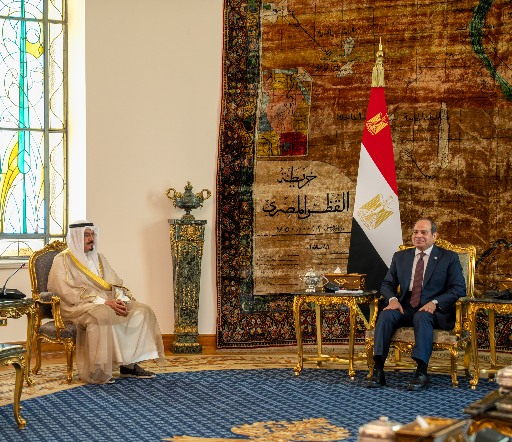 Egyptian President Abdelfattah Al-Sisi receives the Representative His Highness the Amir Sheikh Meshal Al-Ahmad Al-Jaber Al-Sabah