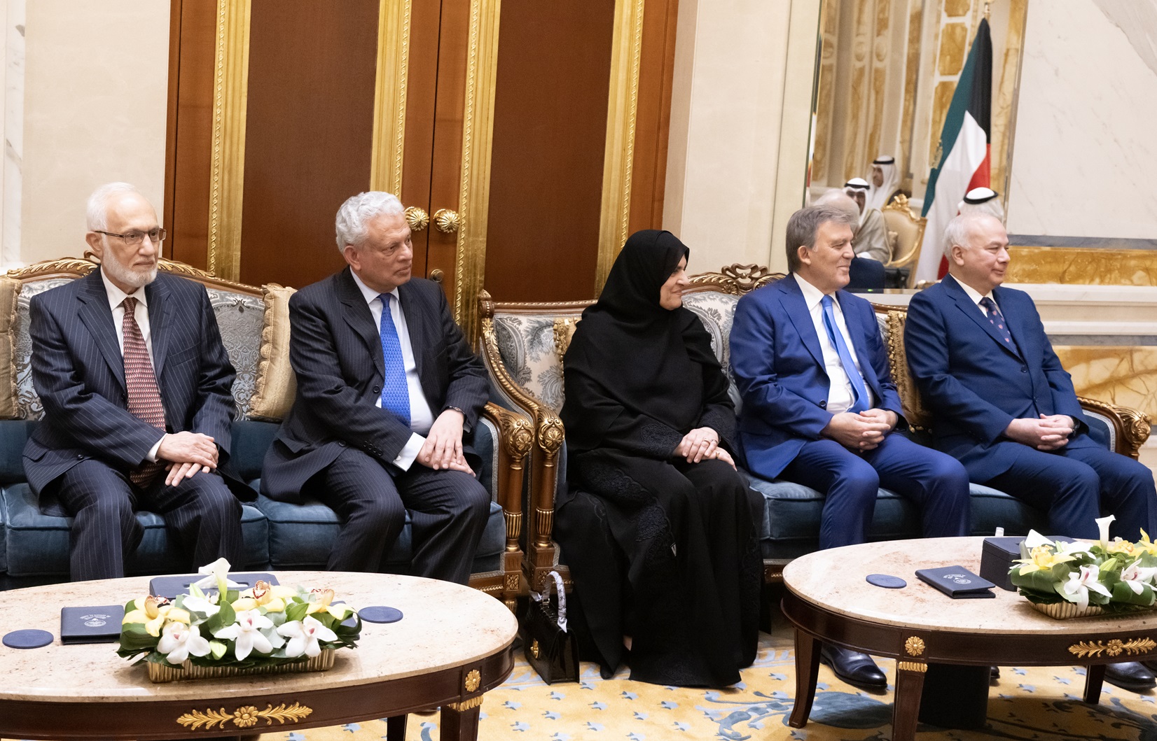His Highness the Amir also met with other board members including Sheikh Dr. Mohammad Sabah Al-Salem Al-Sabah, Dr. Abdullah Gul, Director General of the Kuwait Direct Investment Promotion Authority (KDIPA) Sheikh Dr. Meshaal Jaber Al-Ahmad Al-Sabah, Dr. Raja Easa Al-Gurg, Director of the Centre Dr. Farhan Nizami, and Dr. Basel Mustafa, on the occasion of their visit to the country.