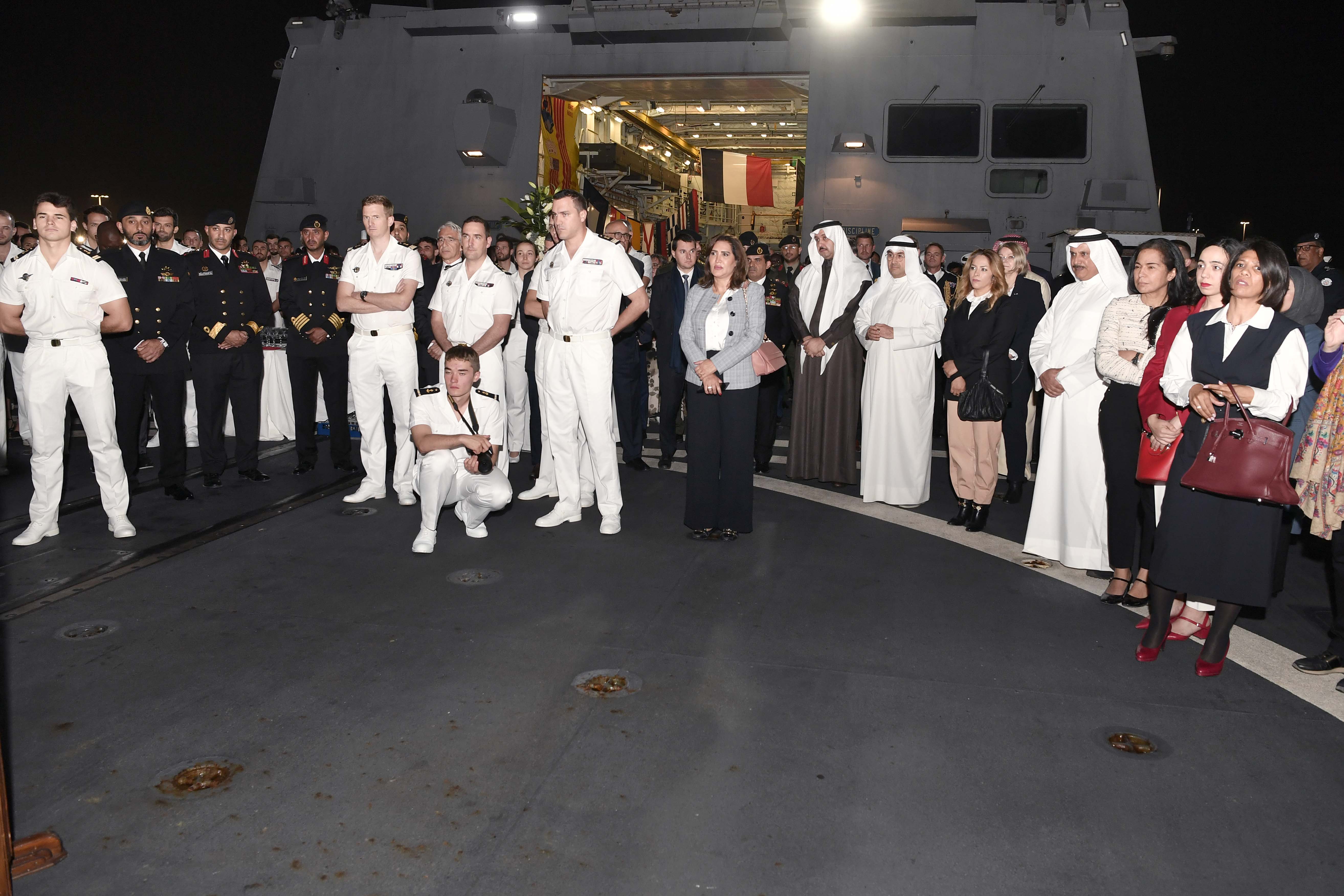 On the evening of December 3, 2025, a reception was held aboard the frigate at the invitation of its commanding officer, Captain Pierre-Louis Josselin, and the French Ambassador to Kuwait, Olivier Gauvin, in the presence of Rear Admiral Hugues Lainأ©, Commander of the French Forces in the United Arab Emirates and the Indian Ocean Maritime Zone.