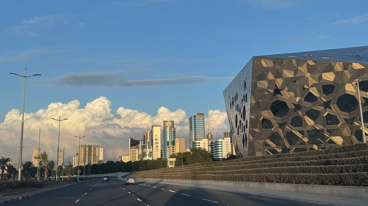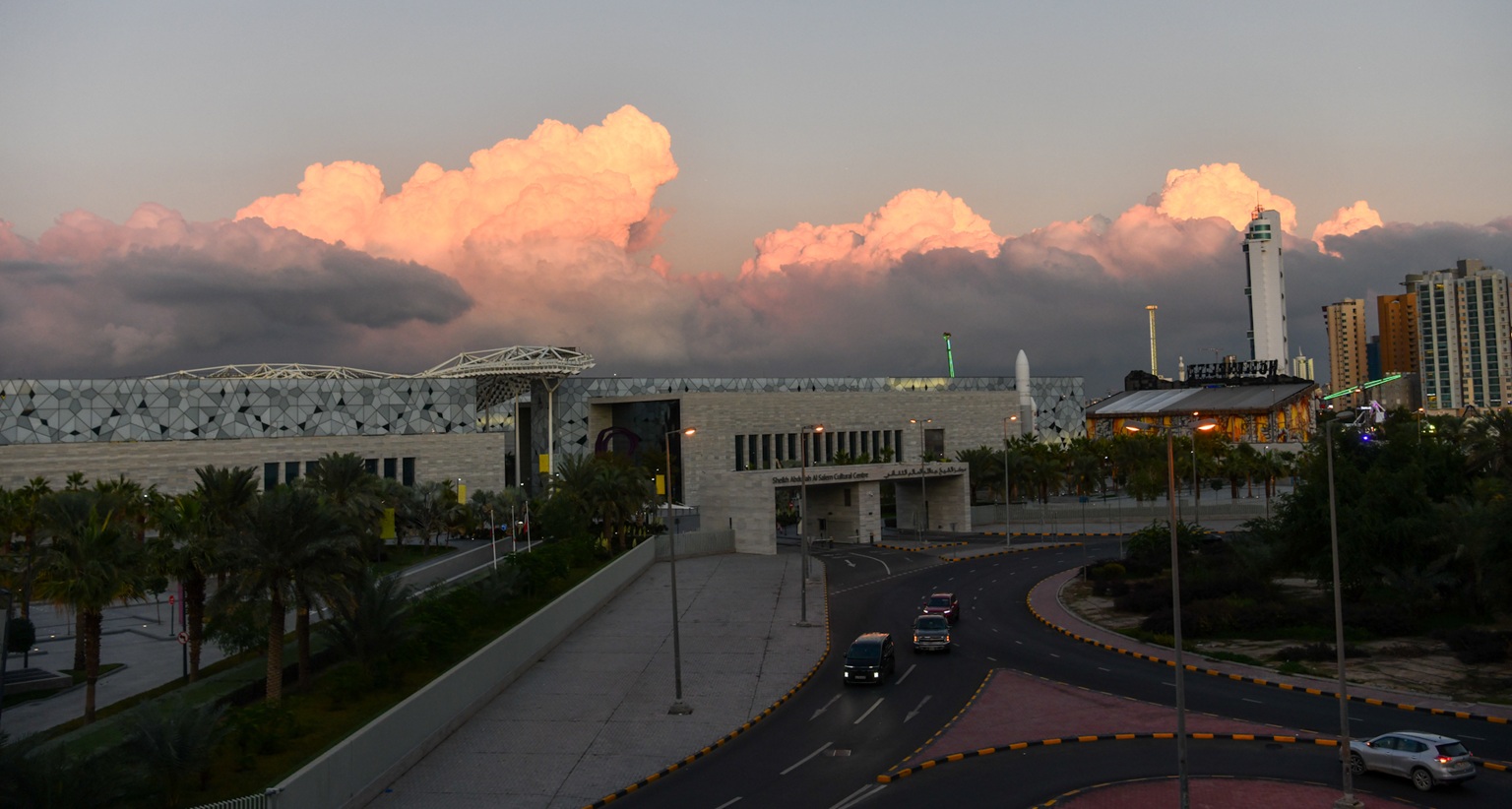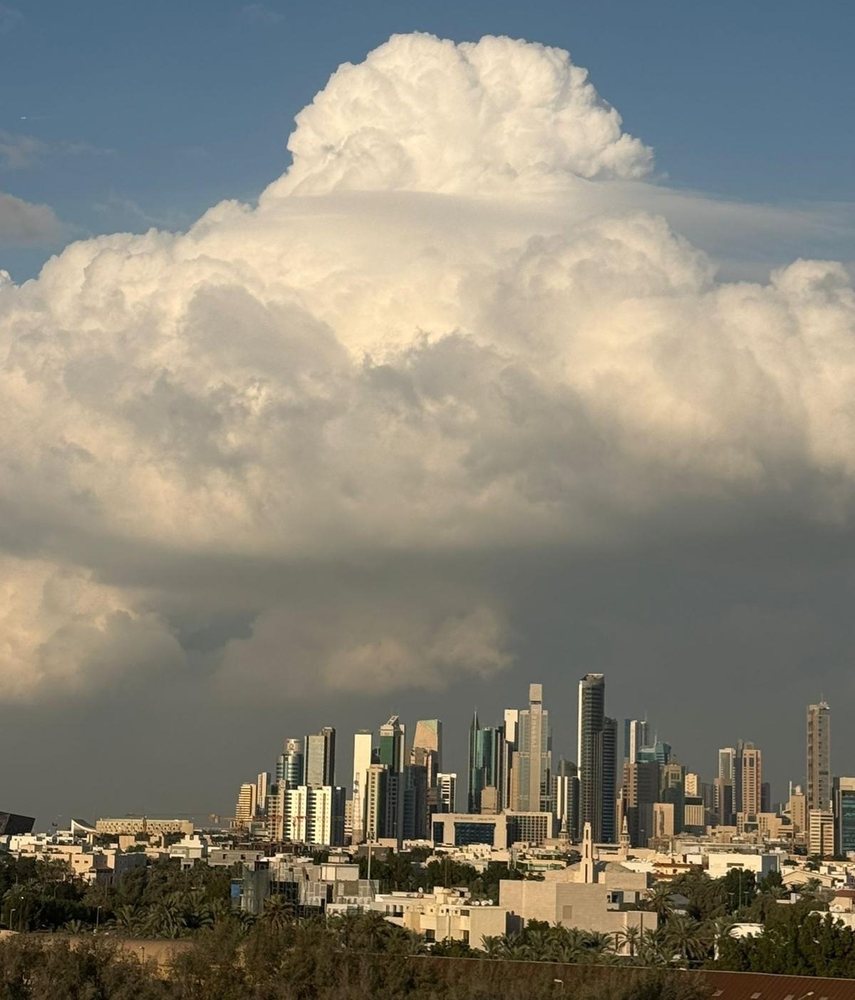 In winter, dense and cohesive cloud masses gathered over the towers and streets, seeming to touch the buildings in an exceptional moment that transformed Kuwait City into a vibrant and beautiful picture.