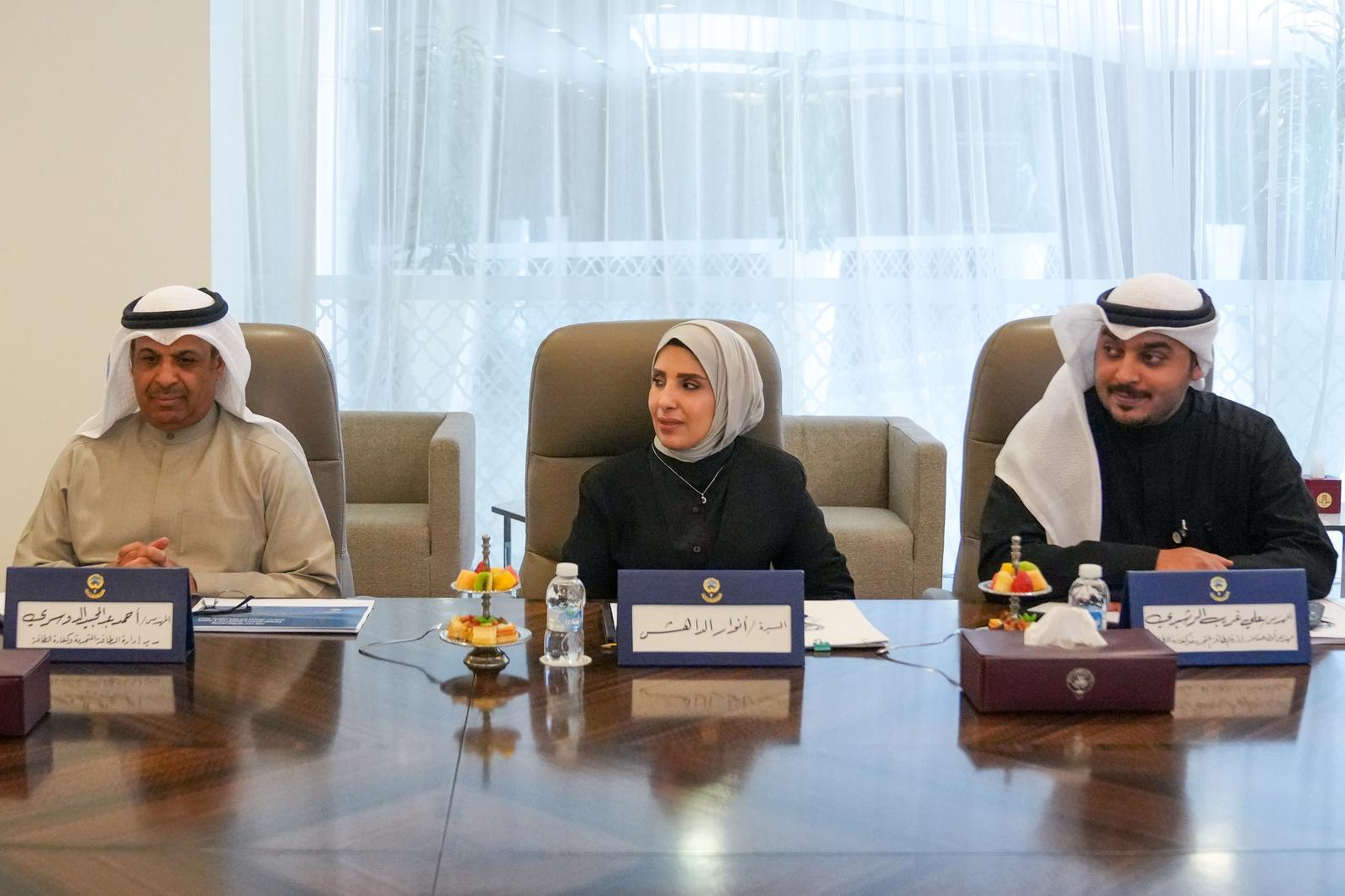 The meeting reviewed the latest reports from relevant government bodies on procedures related to key development projects, including Mubarak Al-Kabeer Port, the electricity sector, renewable energy development, low-carbon green waste recycling systems, housing development, environmental infrastructure for wastewater treatment plants, free zones, economic zones and efforts to combat desertification.