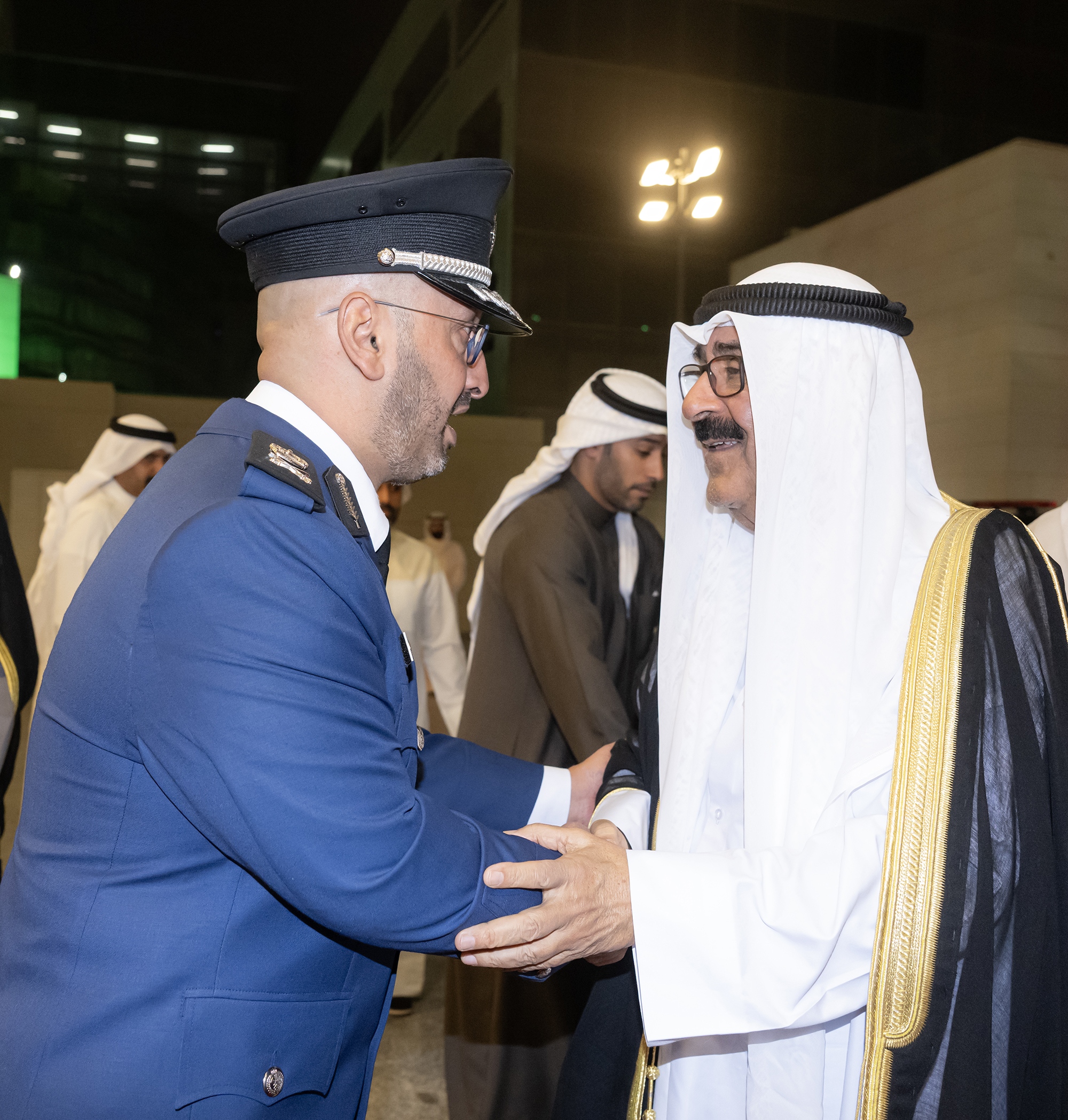 Upon arrival, His Highness the Amir was received by First Deputy Prime Minister and Interior Minister Sheikh Fahad Yusuf Saud Al-Sabah and KFF chief Maj. Gen. Talal Al-Roumi.