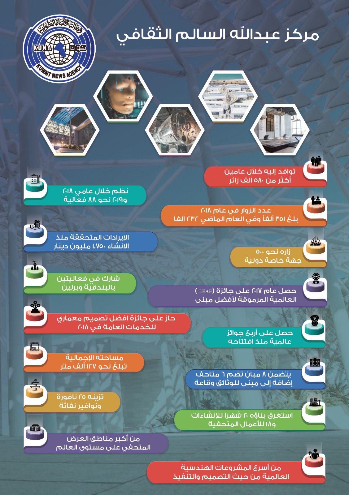 (تقرير) الكويت - 18 - 1 (كونا) -- على مدار عامين من نشاطه المتميز استطاع مركز الشيخ عبدالله السالم الثقافي أن يضع بصمته في الحياة الثقافية الكويتية ويرسخ مكانته باعتباره إحدى المنارات العلمية والتاريخية الحديثة في الكويت حيث توافد اليه خلال عامين اكثر من 580 الف زائر.