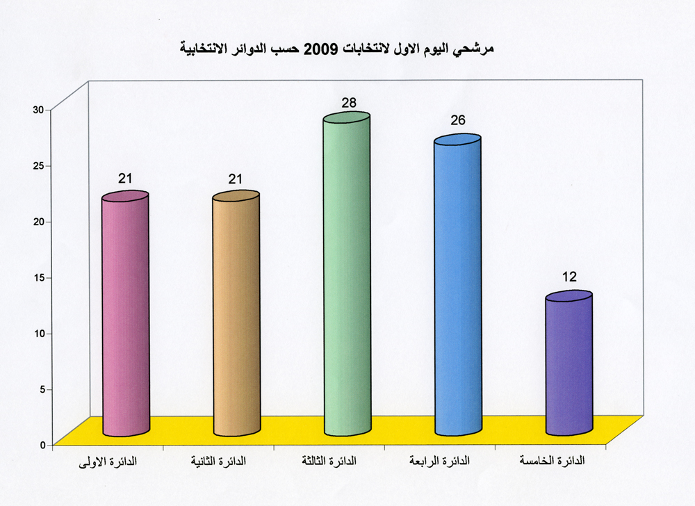 رسم بياني يوضح مرشحي ومرشحات اليوم الأول لانتخابات 2006 - 2008 - 2009