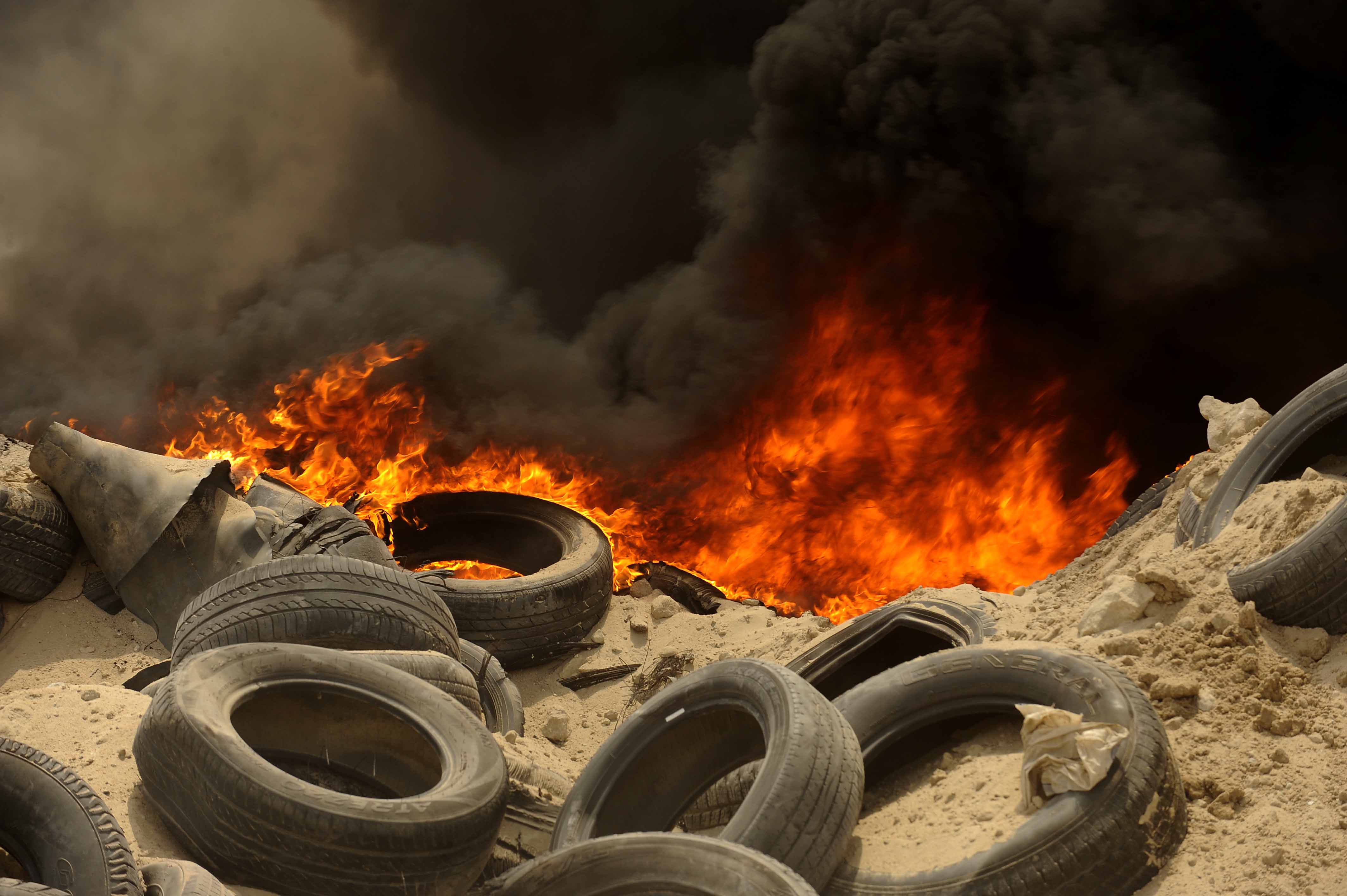 جانب من حريق الاطارات في منطقه رحيه