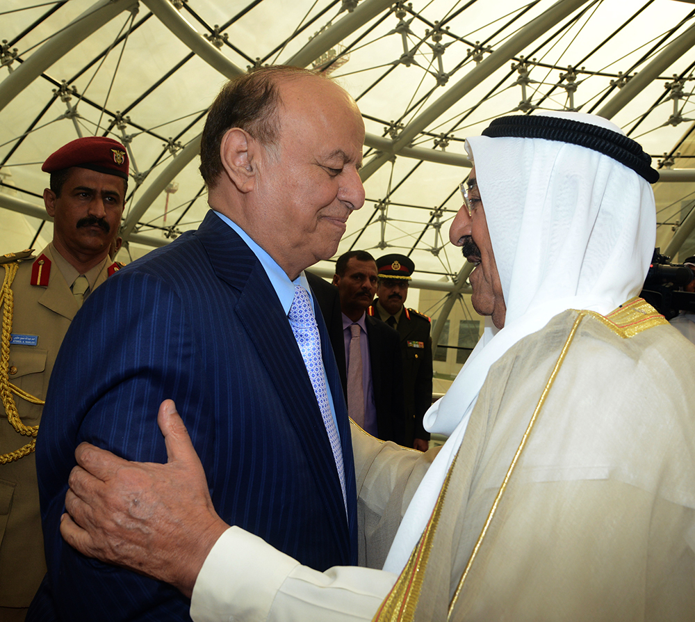 فخامة الرئيس عبدربه منصور هادي رئيس الجمهورية اليمنية الشقيقة أثناء مغادرته وفي وداعه حضرة صاحب السمو أمير البلاد الشيخ صباح الأحمد الجابر الصباح