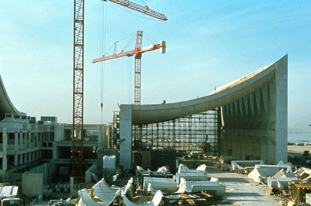 Utzon's original plans went through several amendments, including the annulment of a conferences hall and the transfer of the entrance of an accompanying mosque from outside to inside the building, but despite these minor alterations the building kept its identity. Some regard the building a link between the sea, where pre-oil era city-dwelling Kuwaitis headed to extract and exchange riches, and the desert, where their Bedouin peers raised essential cattle and aided the transportation of necessary drinking water.