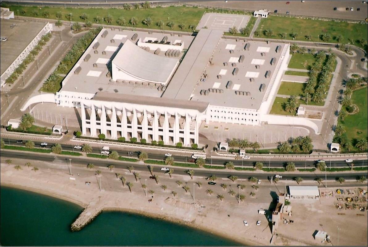The ground floor hosts the offices of HH the Amir, HH the Crown Prince and parliament secretariat employees, a ceremony chamber, a cafeteria, a library, a mosque, a resting room and several separate meeting rooms.