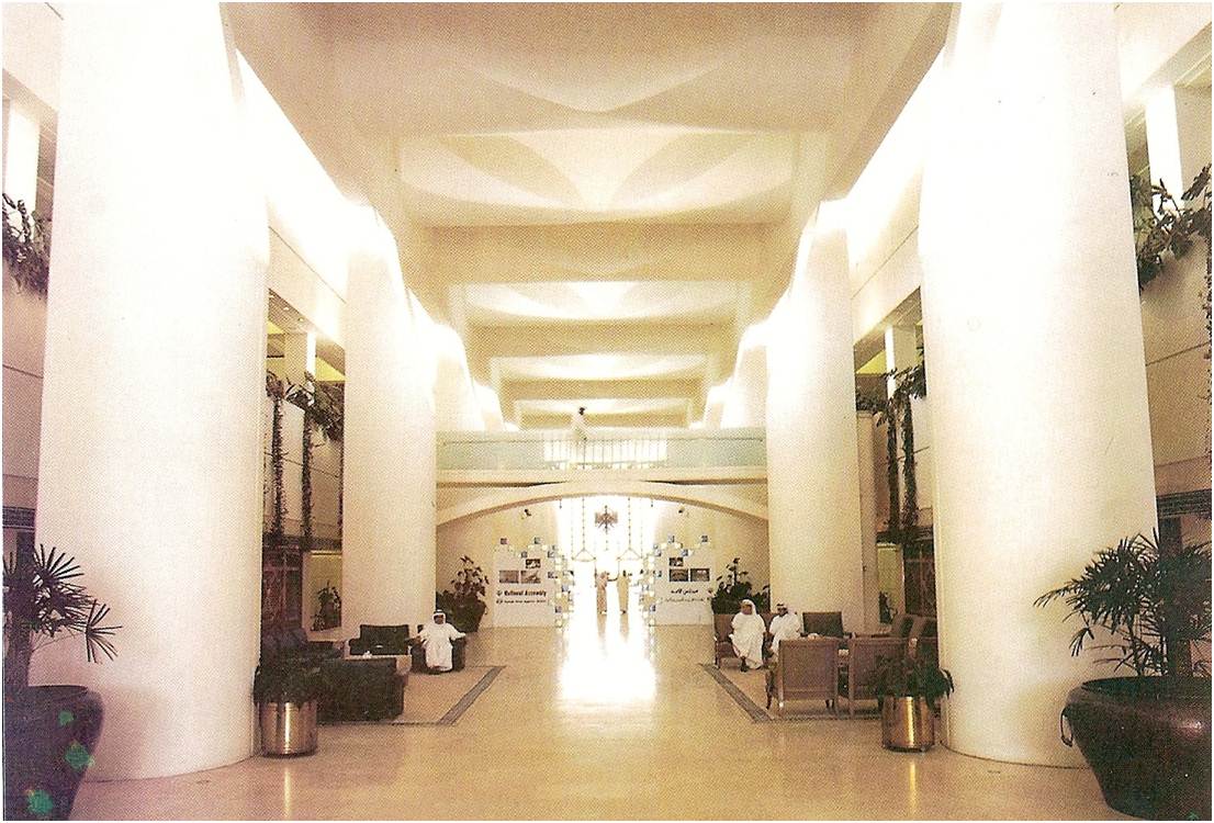 Overlooking the country's trendy Arabian Gulf Street, the crystal white building sways upwards from back to front, as the ceiling gives way to the appearance of fabric hitched on to 12 pillars that hold up the building at the front. The main entrance is located at the front of the building - regarded the southern exit - just behind the pillars and under the highest point of the dominating curve.