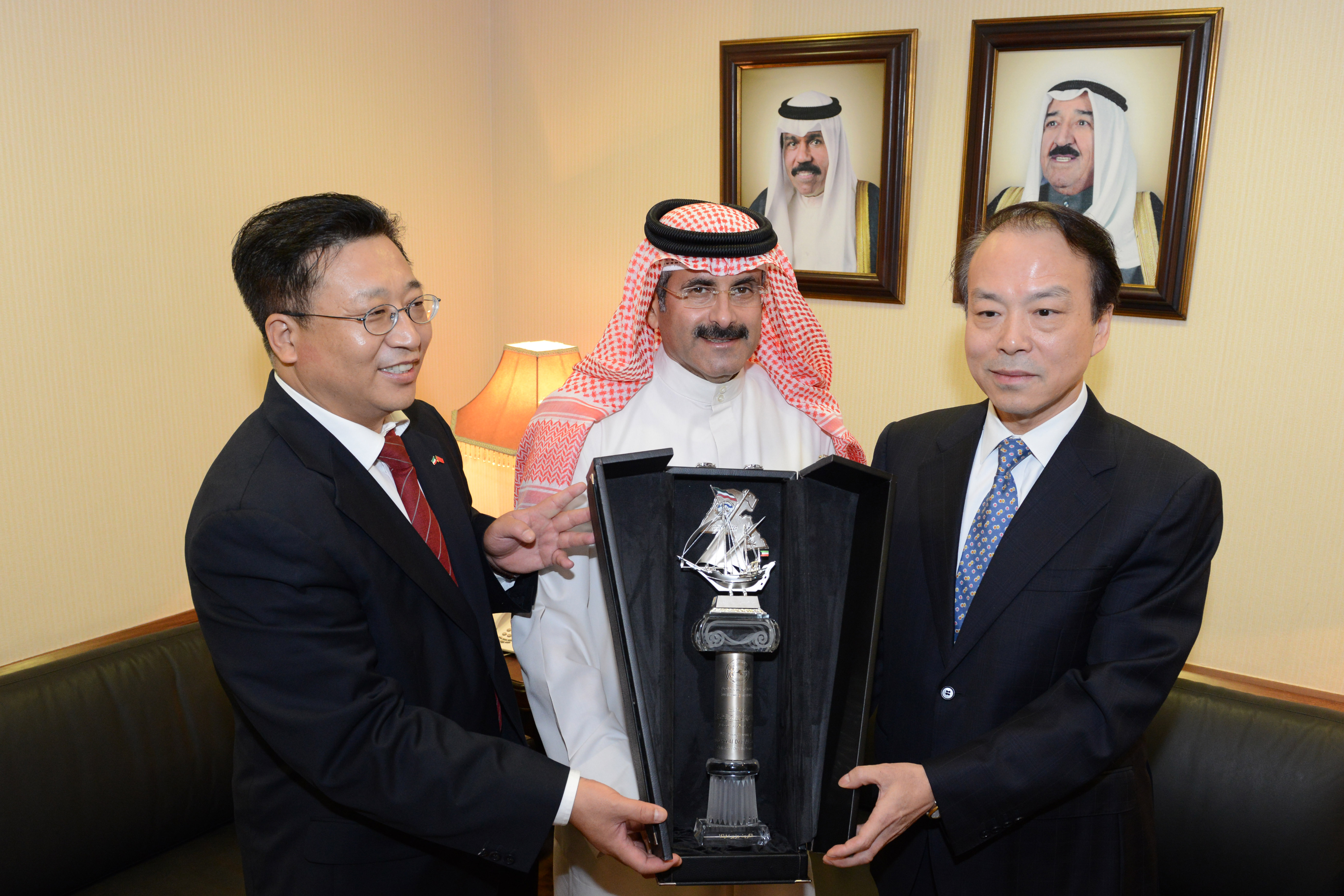 KUNA's Board Chairman and Director General Sheikh Mubarak Al-Duaij Al-Ibrahim Al-Sabah made an agreement with the visiting Xinhua Editor in Chief He Ping to implement a cooperation accord, signed between the two agencies back in 1993.