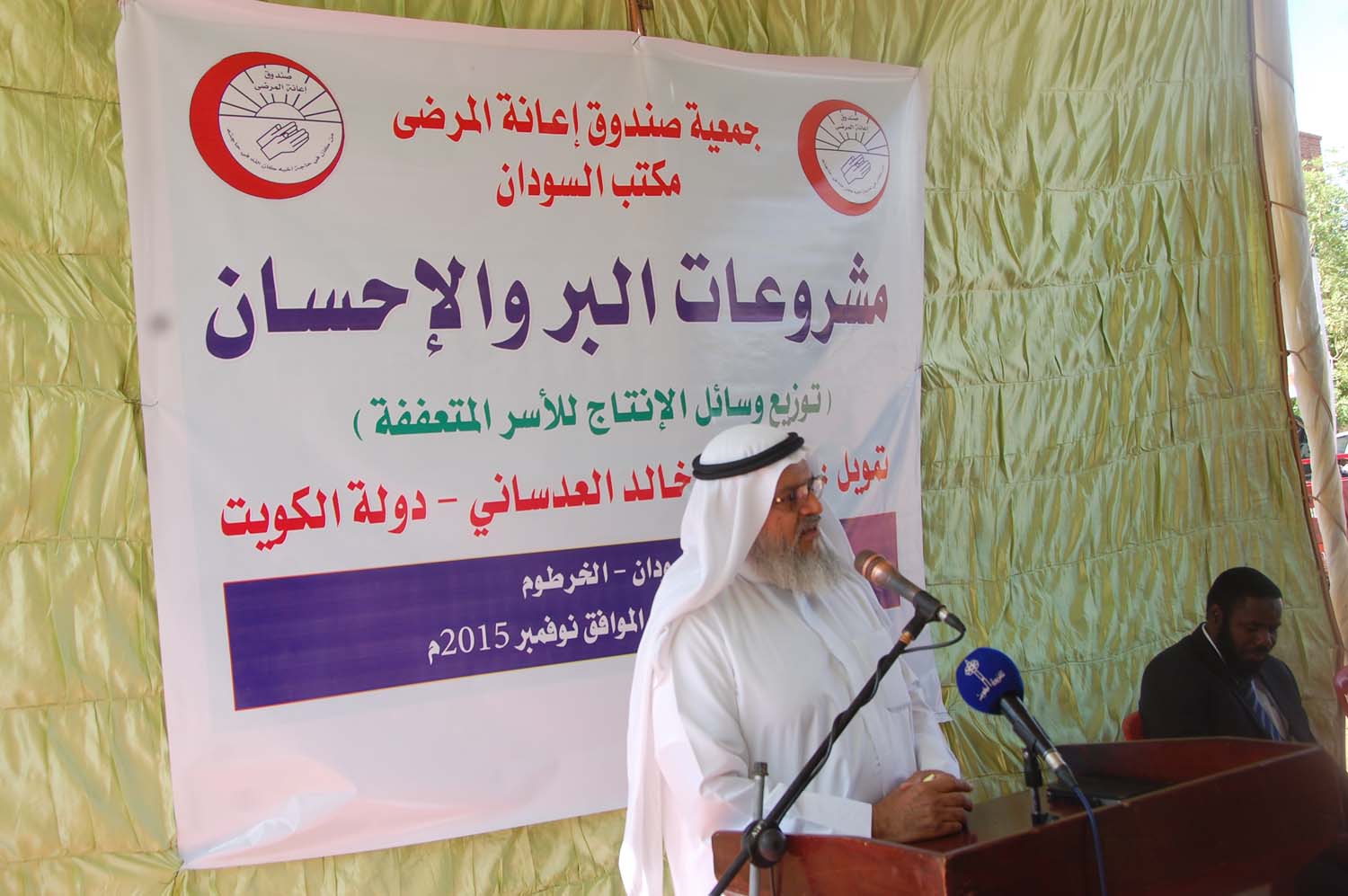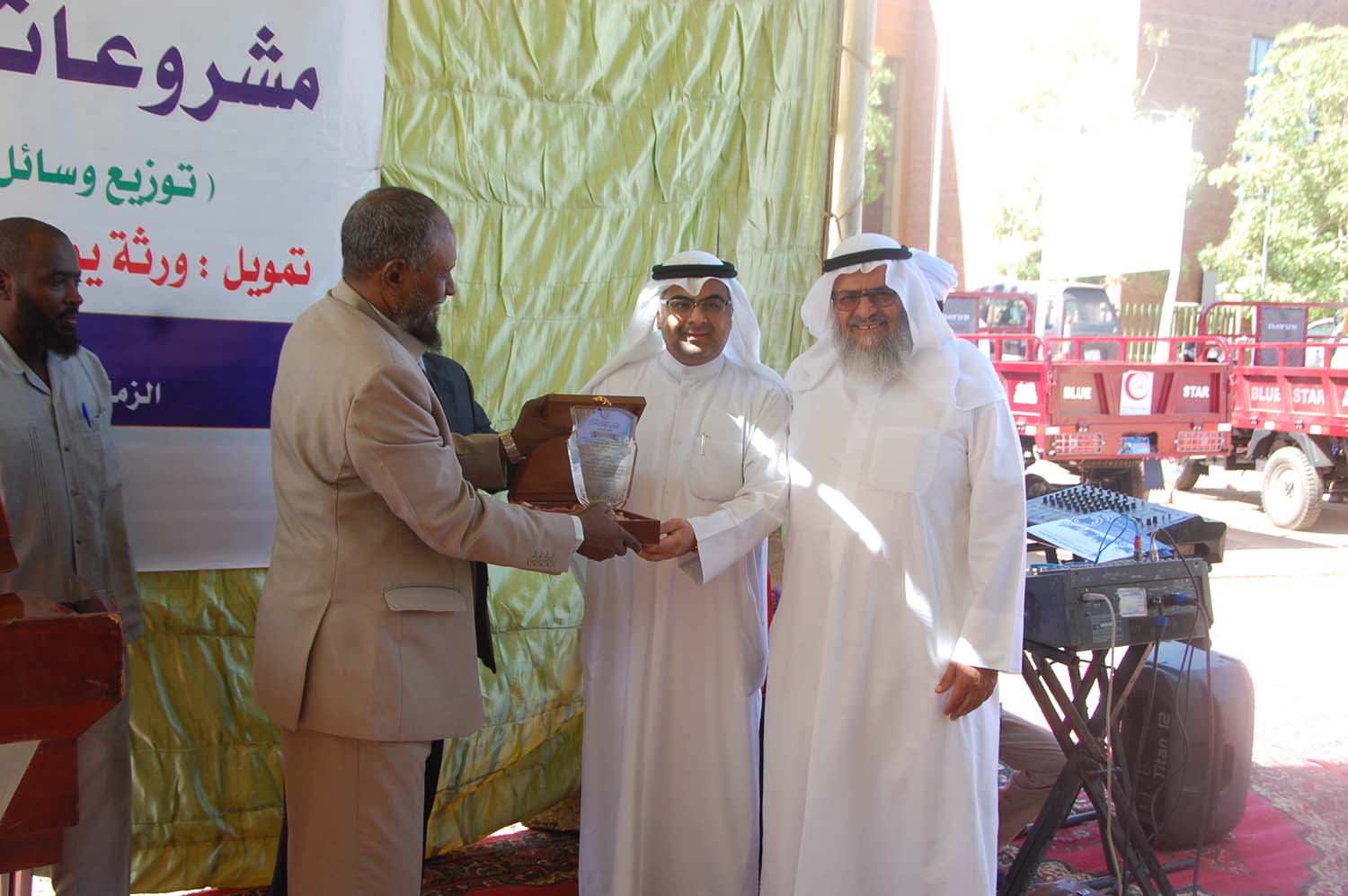 وحضر احتفال توزيع المساعدات المكونة من 15 مقطورة صغيرة لنقل الامتعة وثلاث سيارات صغيرة لنقل الركاب سفير الكويت لدى السودان طلال منصور الهاجري ورئيس مجلس ادارة جمعية صندوق إعانة المرضى محمد أحمد الشرهان ورئيس مجلس إدارة الصندوق بالسودان محمد الحسن عبدالرحمن.