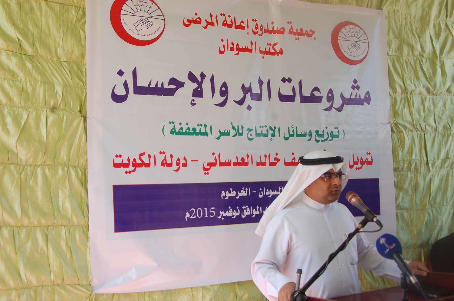 وبدوره أثنى رئيس الصندوق بالسودان على الدعم الكبير والتمويل السخي لكافة للمساعدات والمشاريع المقدمة بتمويل من اهل الخير في دولة الكويت خاصة ورثة المرحوم يوسف خالد العدساني لتقديمهم هذه المساعدات. (النهاية)