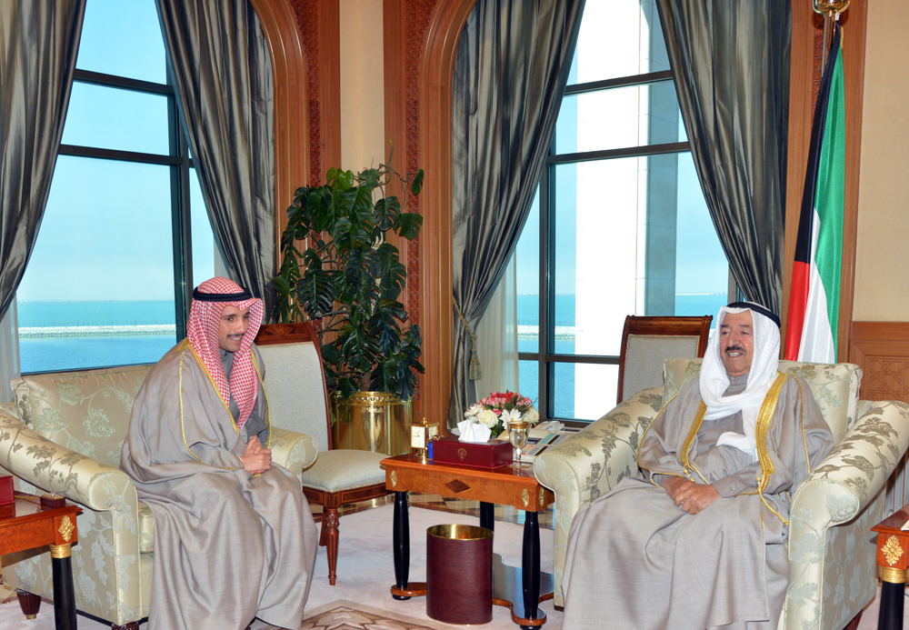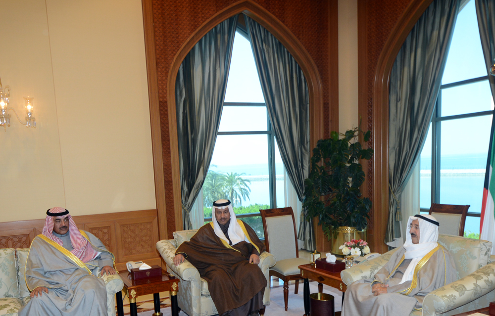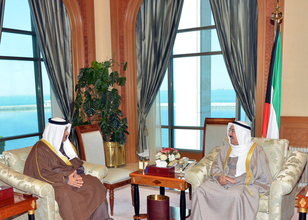 حضرة صاحب السمو أمير البلاد الشيخ صباح الأحمد الجابر الصباح حفظه الله ورعاه مستقبلا سمو ولي العهد الشيخ نواف الأحمد الجابر الصباح