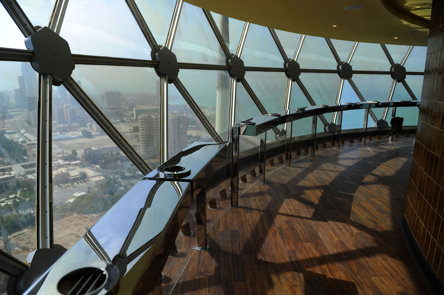 The viewing sphere is situated 123 meters above sea level. It rotates 360 degrees every half an hour to give visitors a full view of Kuwait.