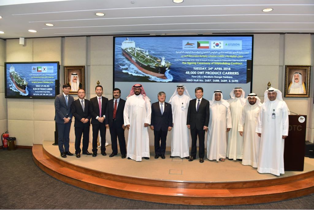 KUWAIT, April 24 (KUNA) -- Kuwait Oil Tanker Company (KOTC) and South Korean shipbuilding firm Hyundai Mipo Dockyard have co-signed a contract worth USD 167.6 million to build a quartet of petroleum products tankers, as part of a major KOTC fleet overhaul.