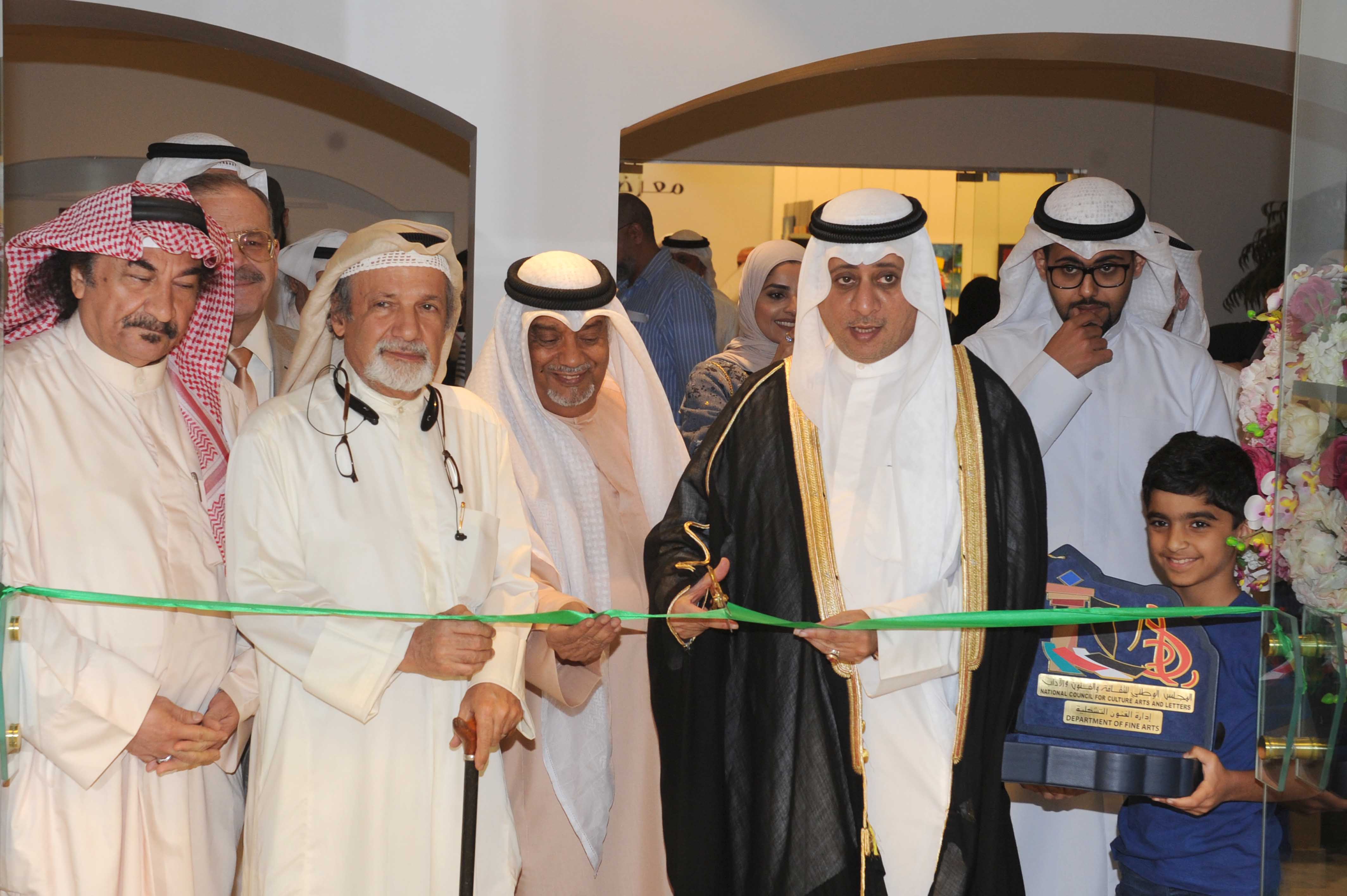 NCCAL's assistant secretary general for arts and theatre Bader Al-Duwaish and officials during the opening of the exhibition
