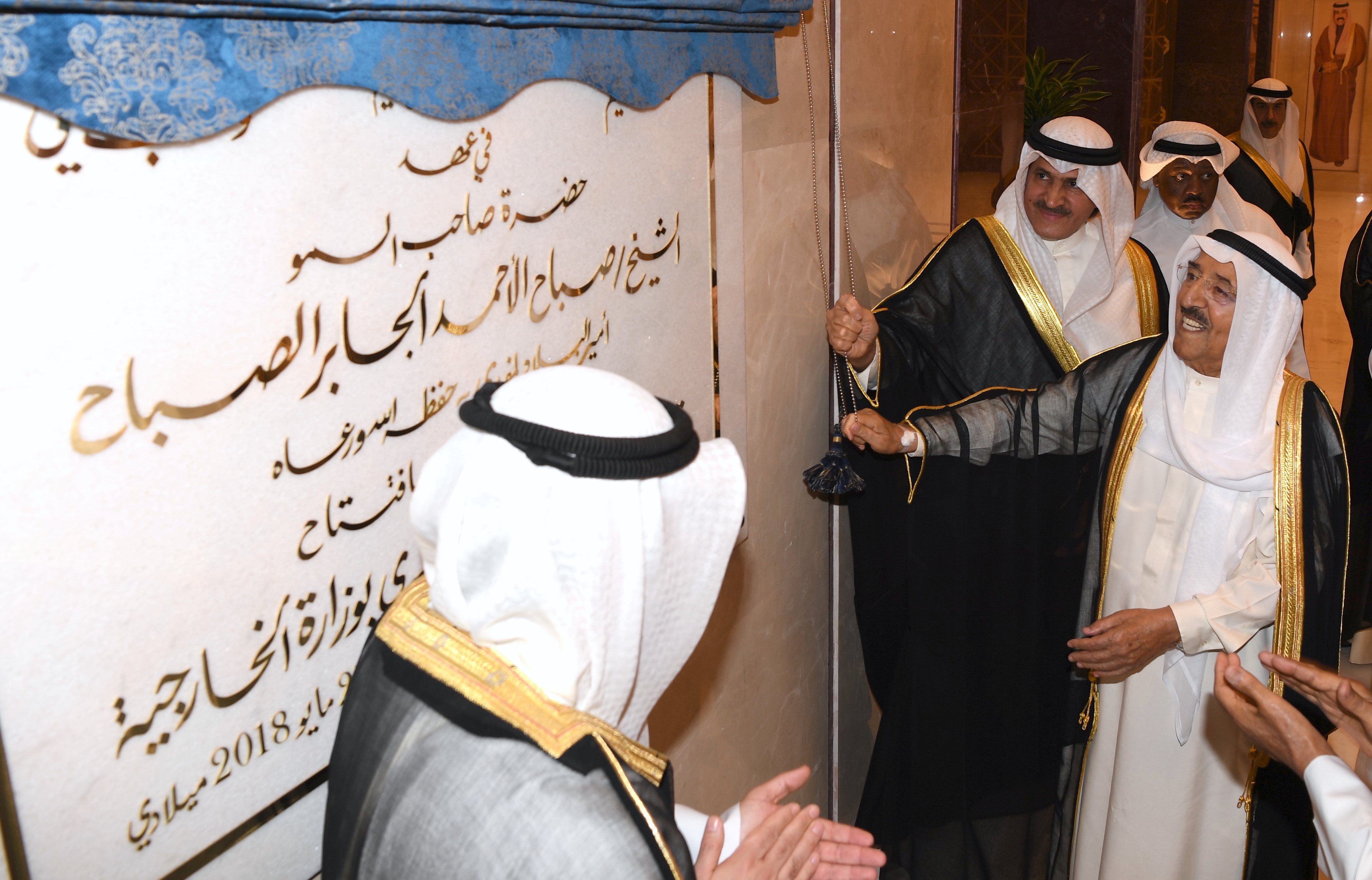 قام حضرة صاحب السمو أمير البلاد الشيخ صباح الأحمد الجابر الصباح حفظه الله ورعاه مساء اليوم وسمو ولي العهد الشيخ نواف الأحمد الجابر الصباح حفظه الله بزيارة الى مبنى وزارة الخارجية حيث شهد سموه رعاه الله حفل تطوير وتوسعة مقر ديوان وزارة الخارجية وافتتاح القاعة الكبرى متعددة الاغراض في الوزارة.