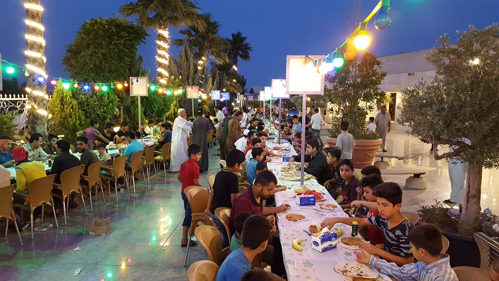 بدوره قال مدير العلاقات العامة بمنظمة (روناهي) الخيرية صالح مهدي في تصريح مماثل ل(كونا) ان مأدبة اليوم شملت 300 شخصا من النازحين العراقيين حيث قدمت في احدى المساجد الكبيرة في مدينة اربيل.