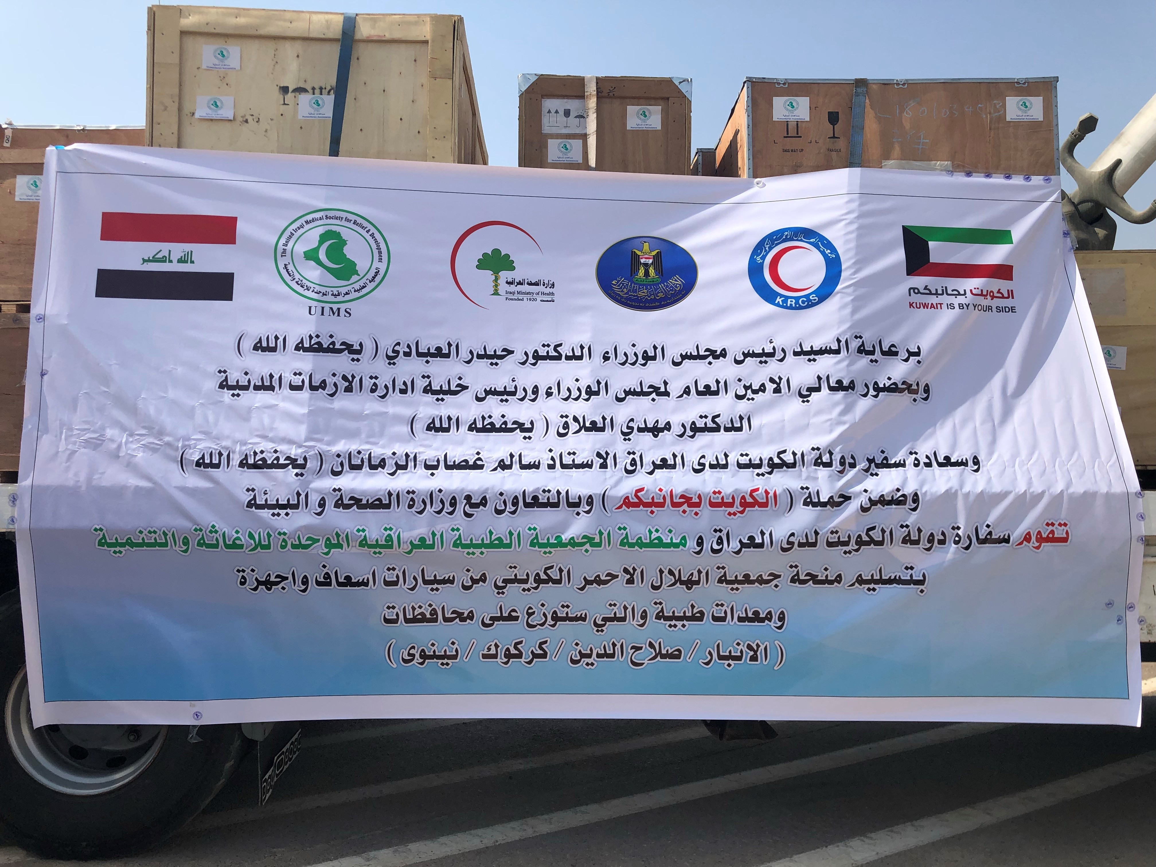 اما رئيس الجمعية الطبية العراقية احمد الهيتي فاوضح ان جمعيته بصفتها الشريك المحلي لجمعية الهلال الاحمر الكويتي في العراق ستعمل على نقل سيارات الاسعاف والمعدات الطبية الى الجهات المستفيدة في محافظات الانبار وكركوك وصلاح الدين ونينوى. (النهاية)