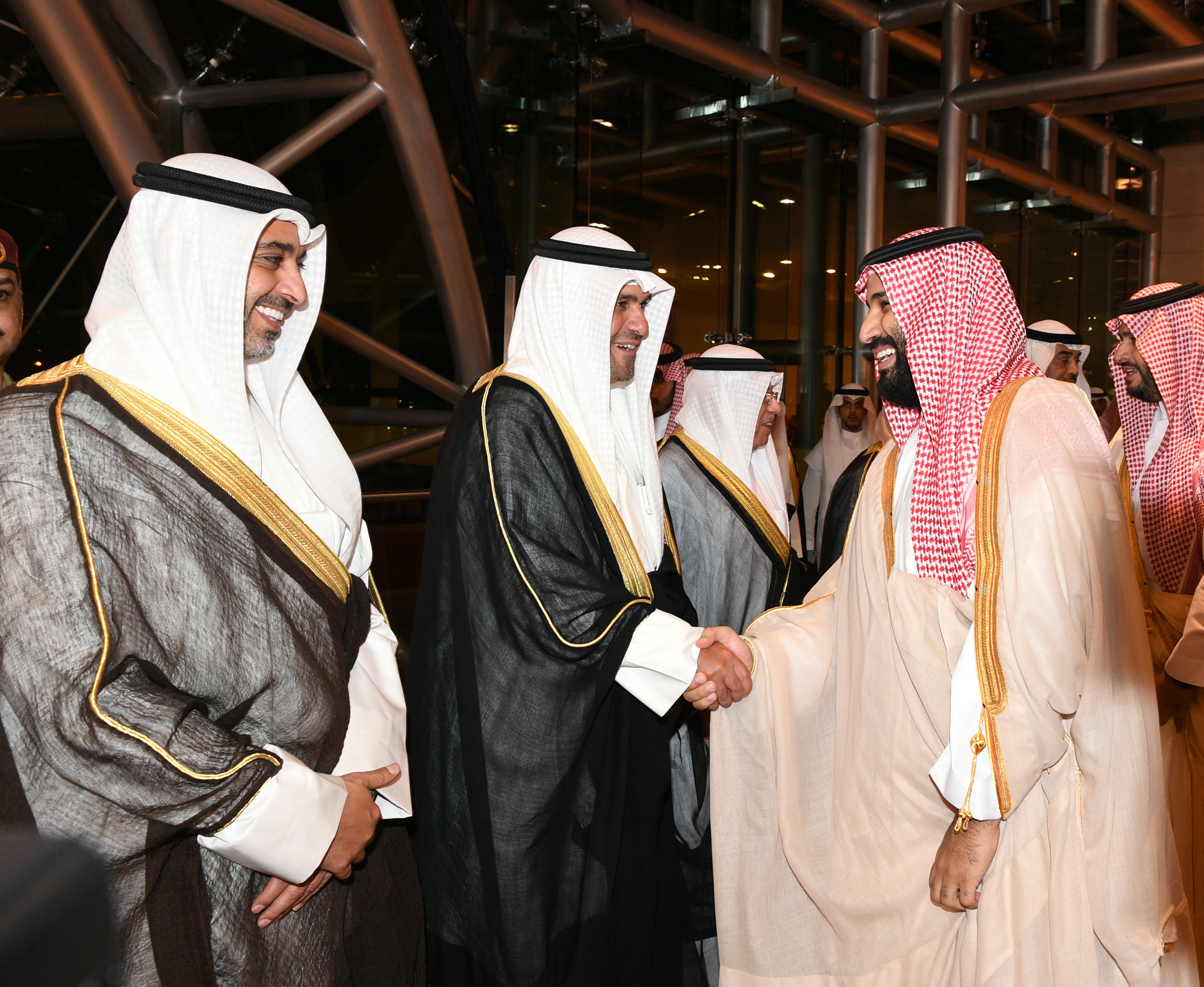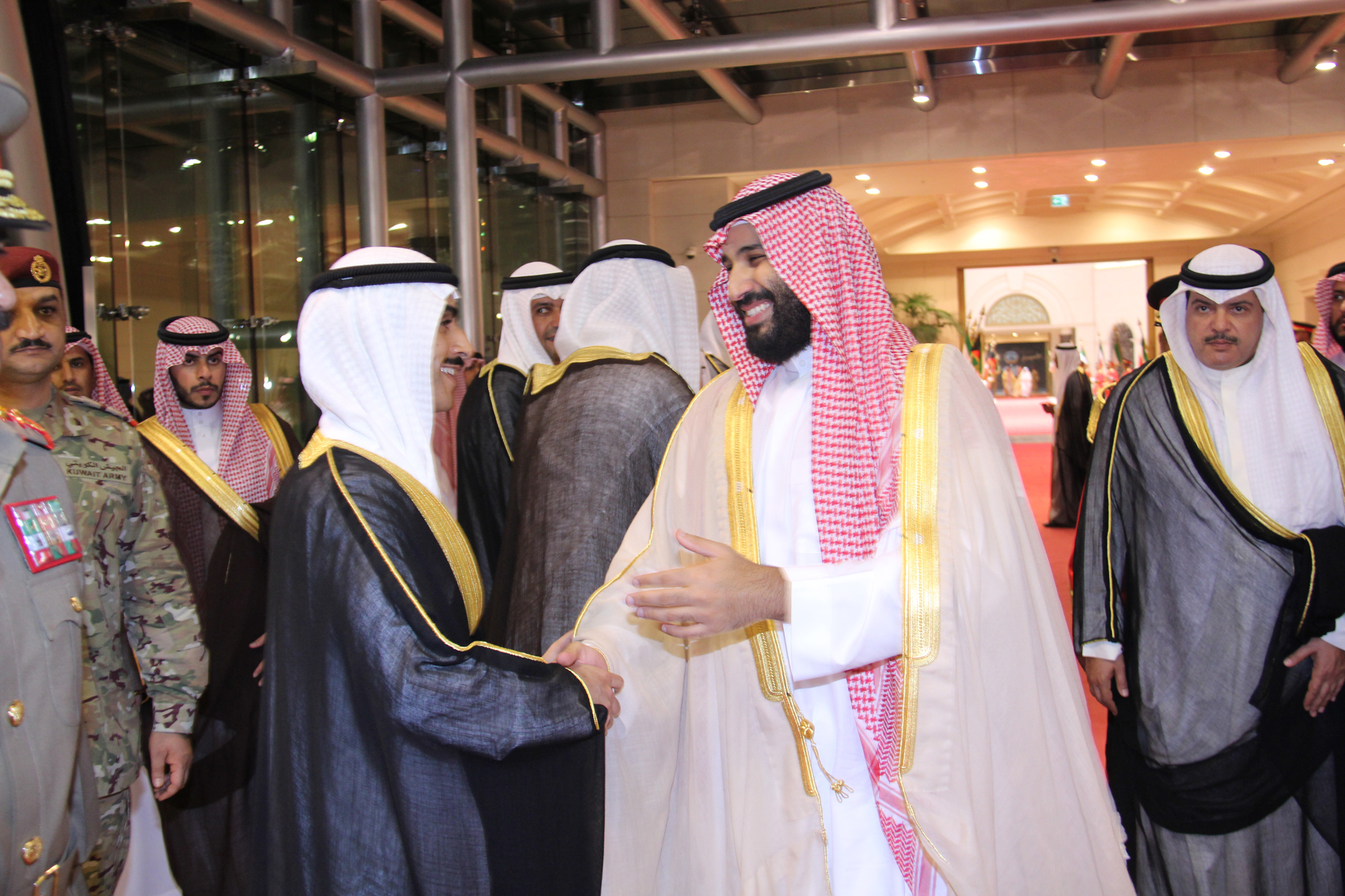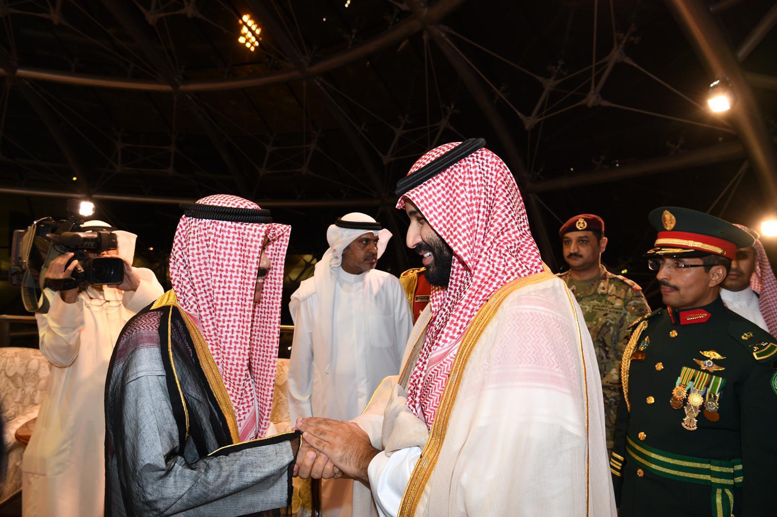 صاحب السمو الملكي الأمير محمد بن سلمان بن عبدالعزيز آل سعود خلال مغادرته وفي وداعه سمو ولي العهد الشيخ نواف الأحمد الجابر الصباح