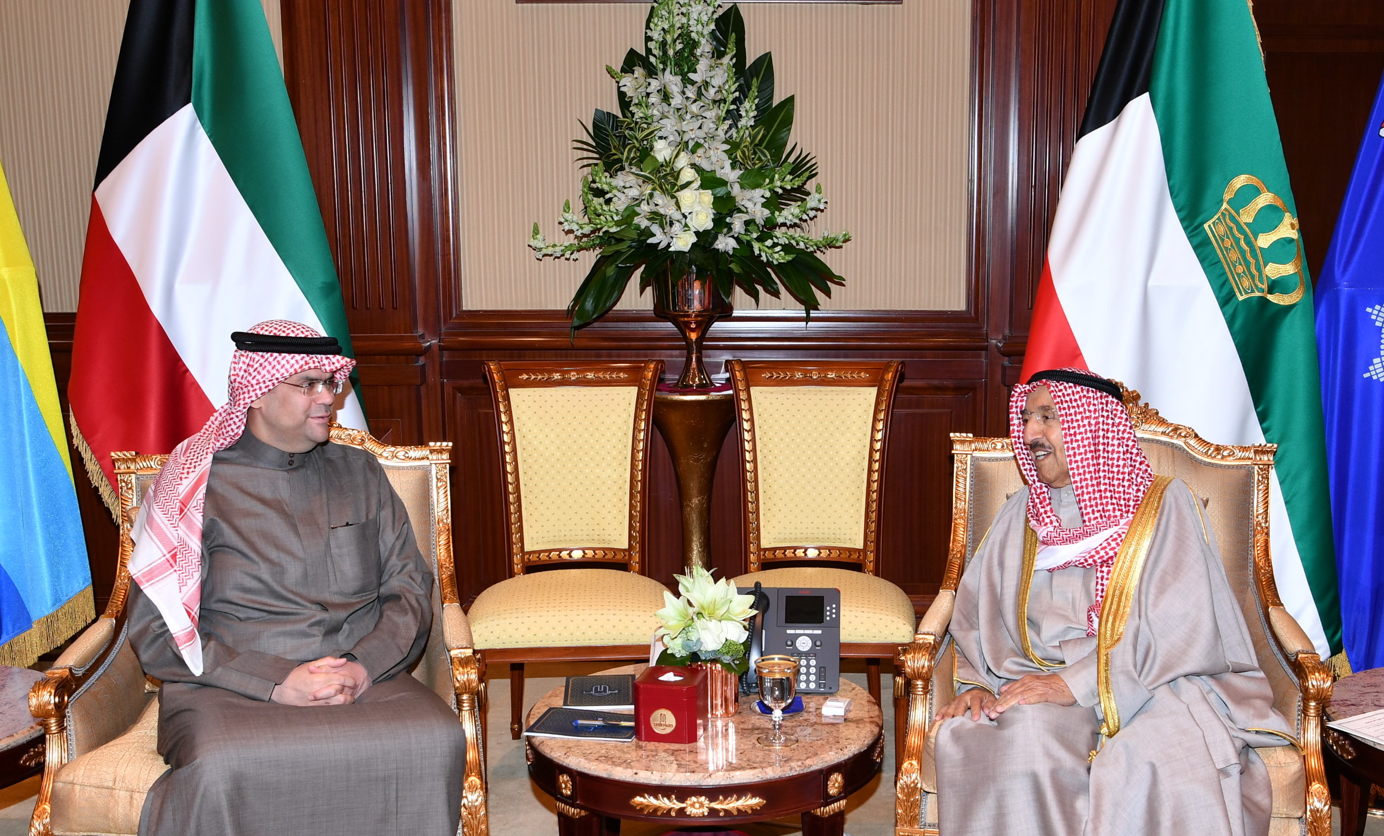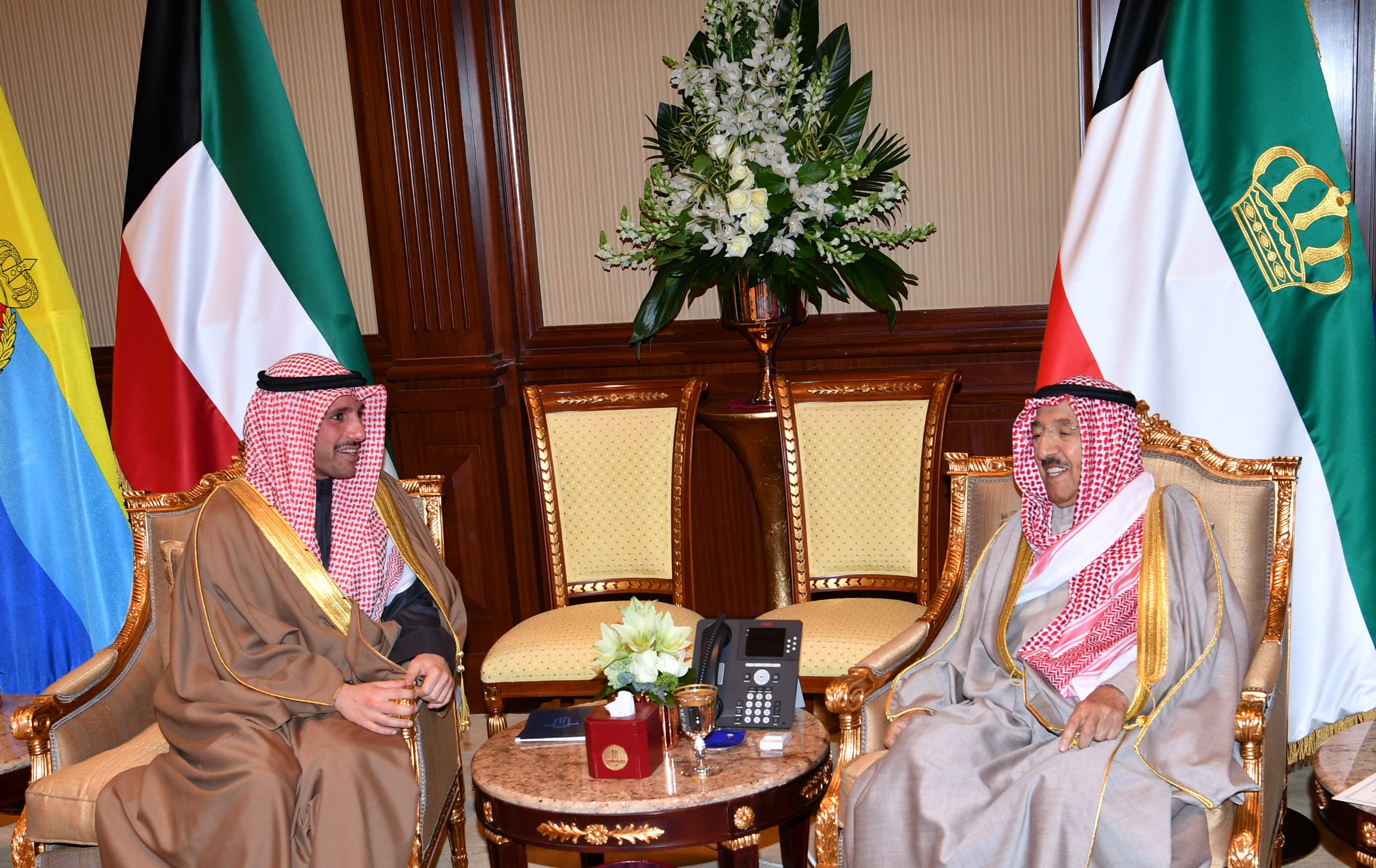 His Highness the Amir met with His Highness the Prime Minister Sheikh Jaber Al-Mubarak Al-Hamad Al-Sabah and Minister of Amiri Diwan Affairs Sheikh Ali Al-Jarrah Al-Sabah.