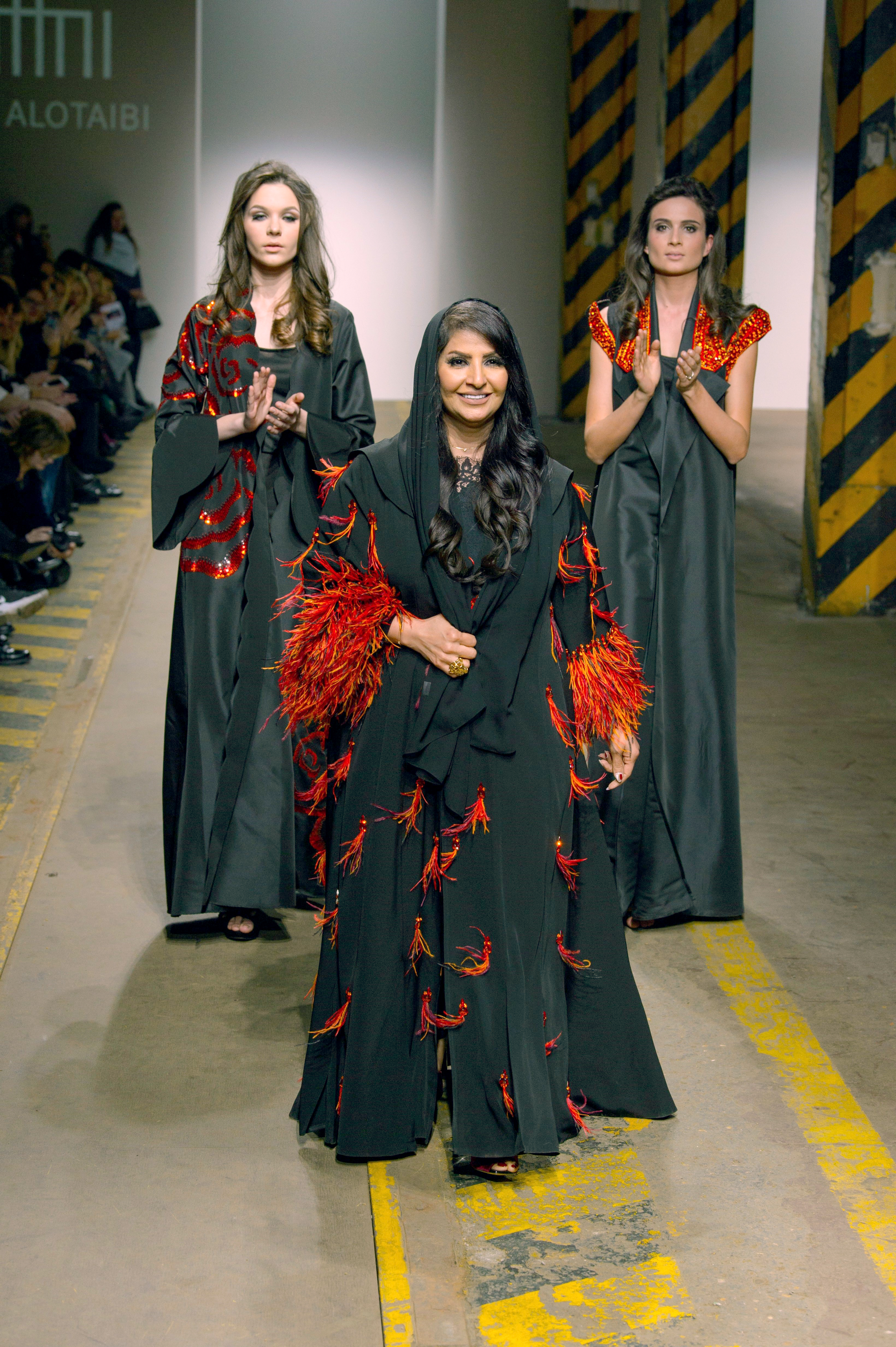 Al-Otaibi showed a collection of 15 Sunset Abayas - long black robes worn by women in the Arabian Gulf region - while Baqer showed 15 Special dresses for women.