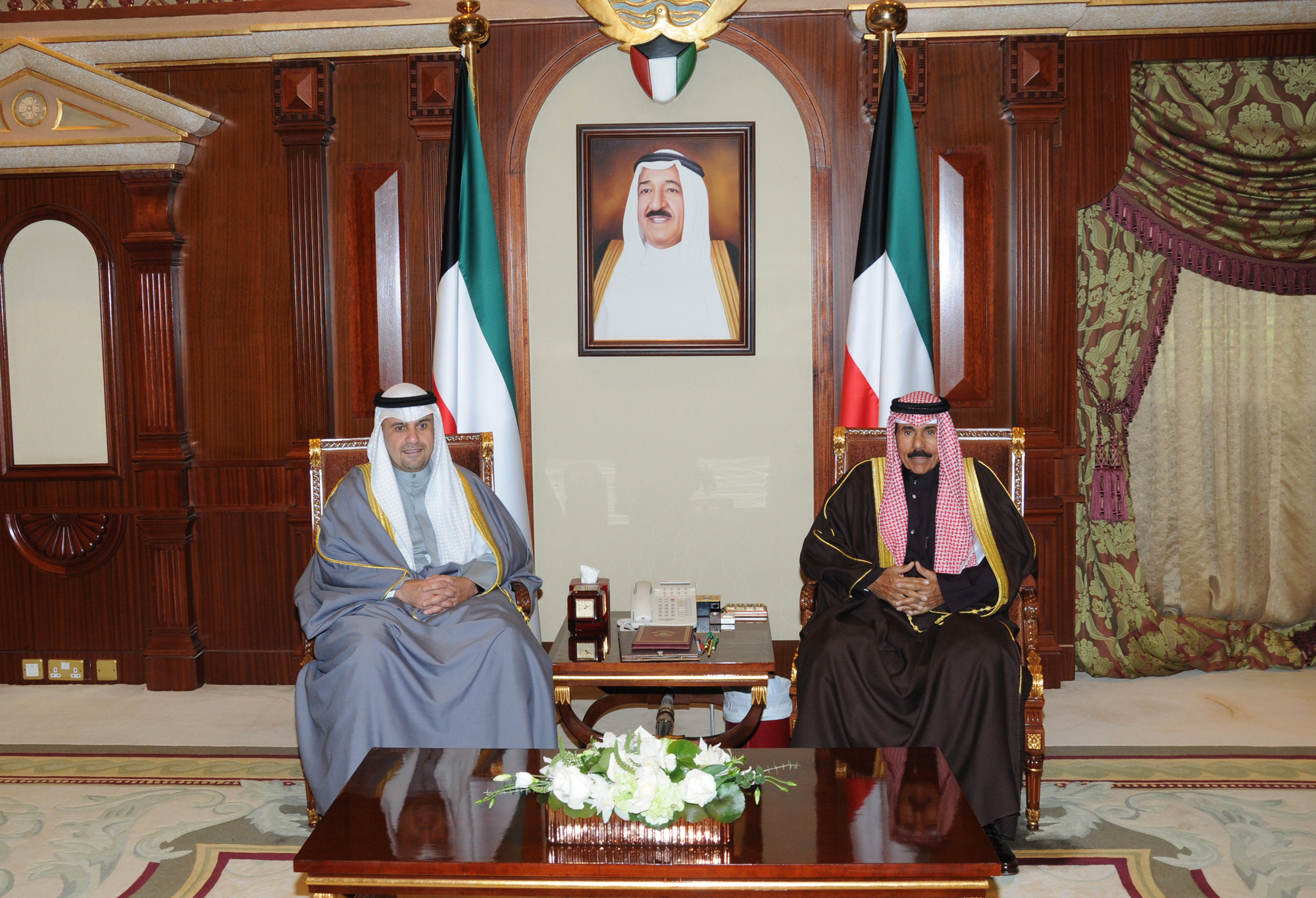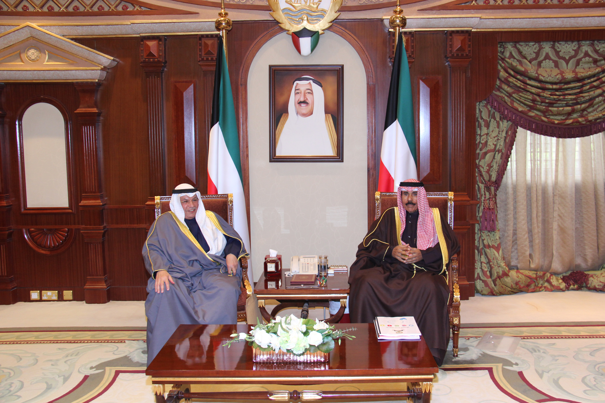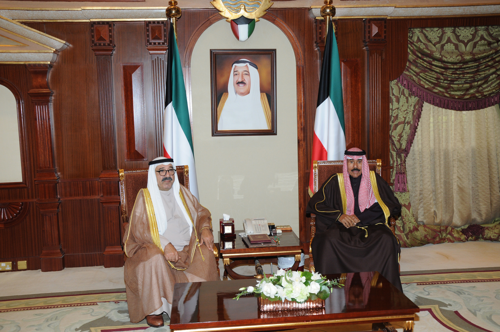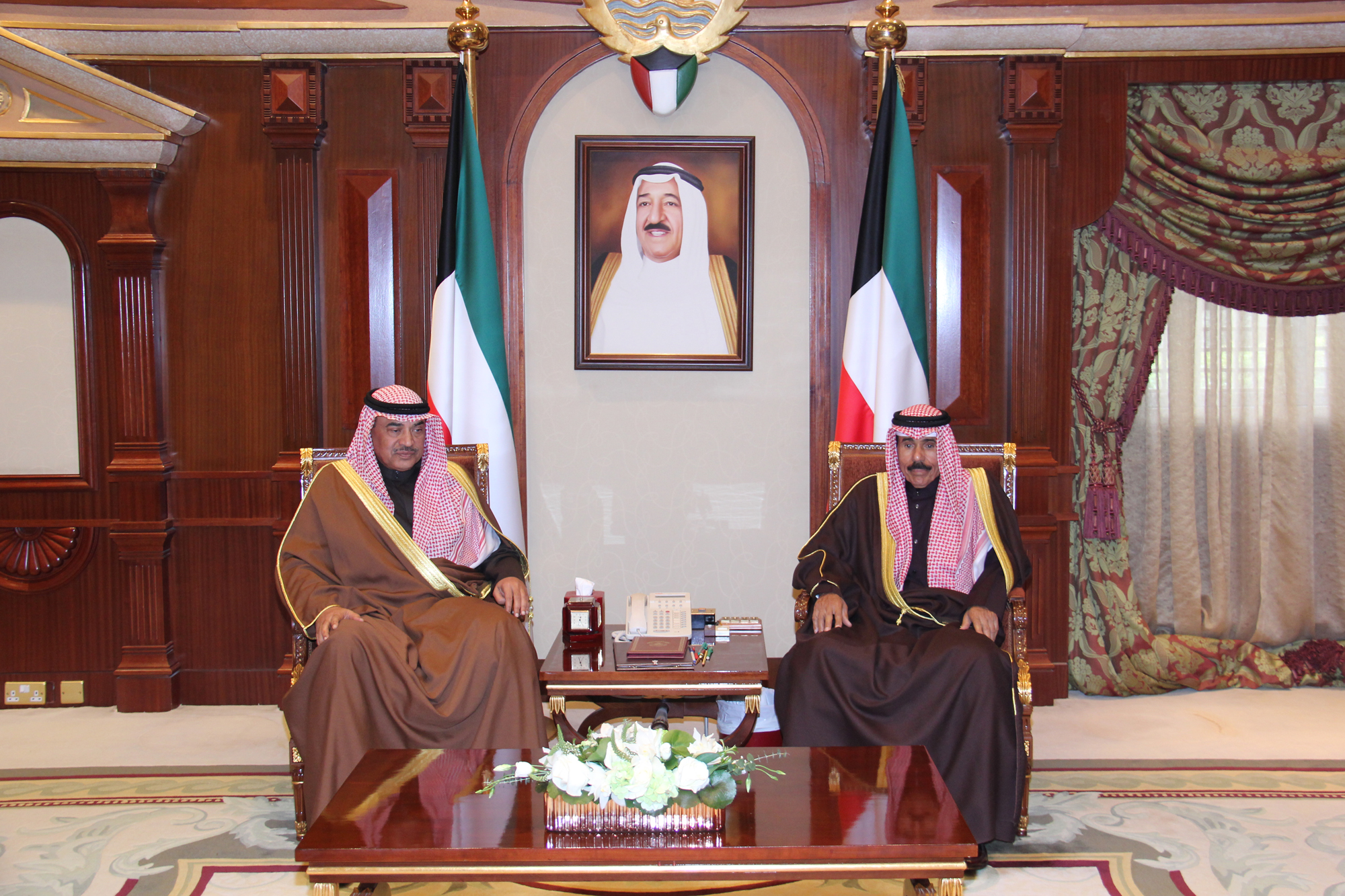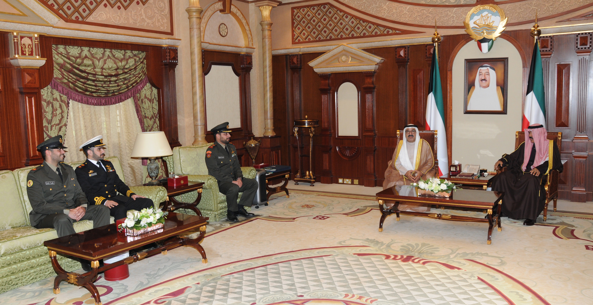 سمو ولي العهد الشيخ نواف الأحمد الجابر الصباح حفظه الله خلال استقبال النائب الأول لرئيس مجلس الوزراء ووزير الدفاع الشيخ ناصر صباح الأحمد الصباح ومجموعة من أبنائه الضباط في الجيش الكويتي