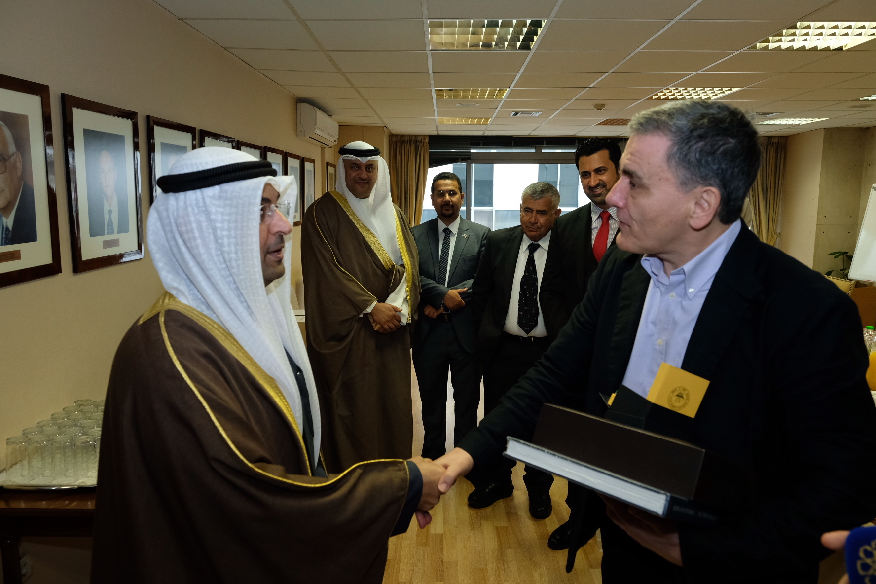 Kuwaiti Finance Minister Nayef Al-Hajraf meets with Greek Finance Minister Euclid Tsakalotos