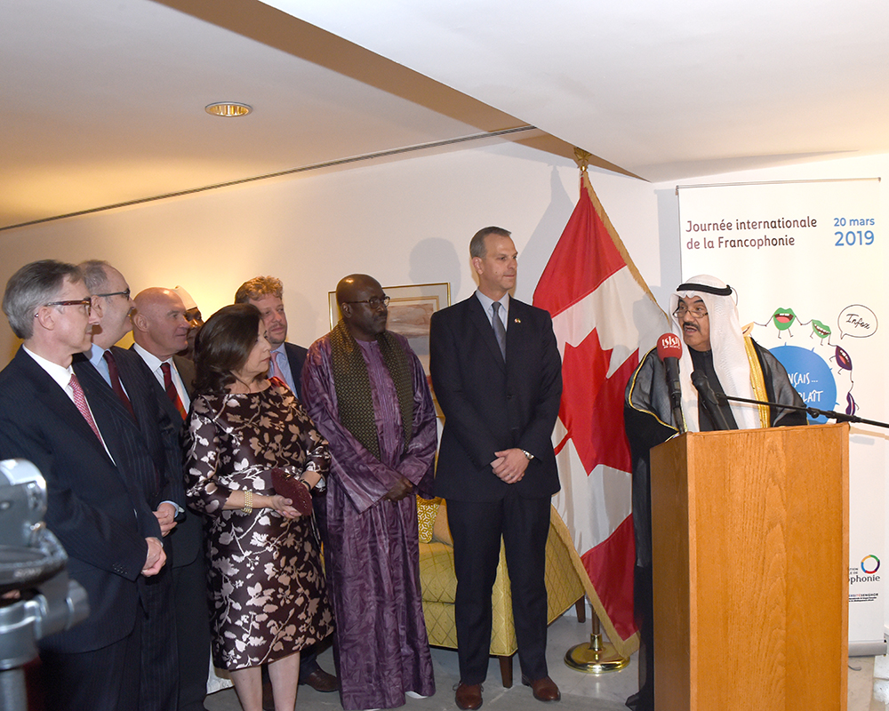 "We meet again to celebrate the International Francophonie Day and to express gratitude for Francophone culture's contributions to humanity allover its history, especially in the realms of literature, philosophy, politics, arts and science," His Highness Sheikh Nasser said in a speech at a special function held at the house of Canada's Ambassador to Kuwait Louis-Pierre Emond on Monday to mark the International Froncophonie Day.