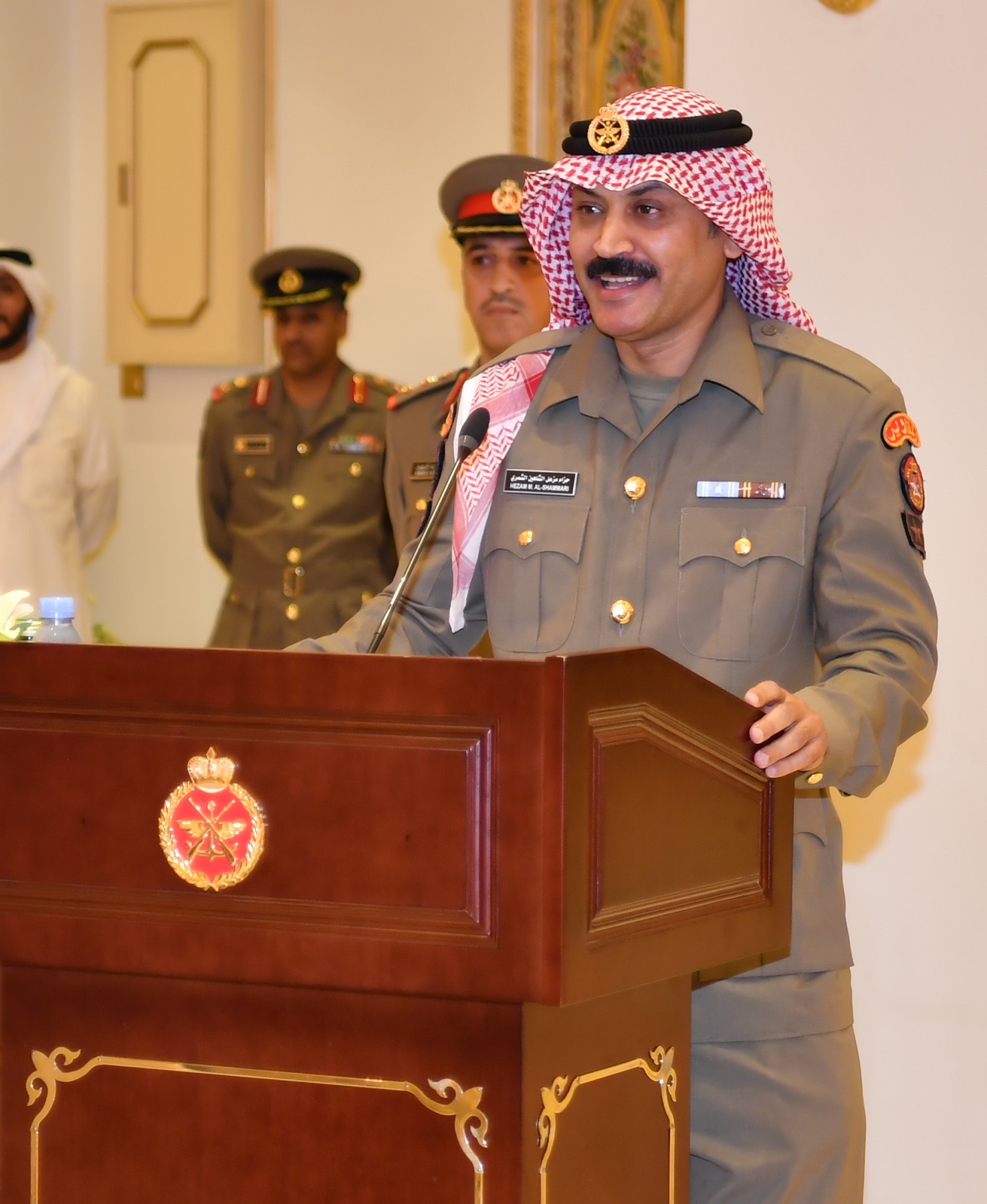 استاذن سموكم بان اقدم الشكر والعرفان لأخي وسندي سعادة نائب رئيس الأركان العامة للجيش الفريق الركن نواف عبدالله الأحمد الصباح والذي له دور رئيسي وبارز في مساندتي في قيادة الجيش الكويتي بكل امانة وصدق واخلاص وبالغ الأثر في تطوير العمل العسكري والعمل جاهدا في تذليل العقبات فنعم الأخ والعون والسند.