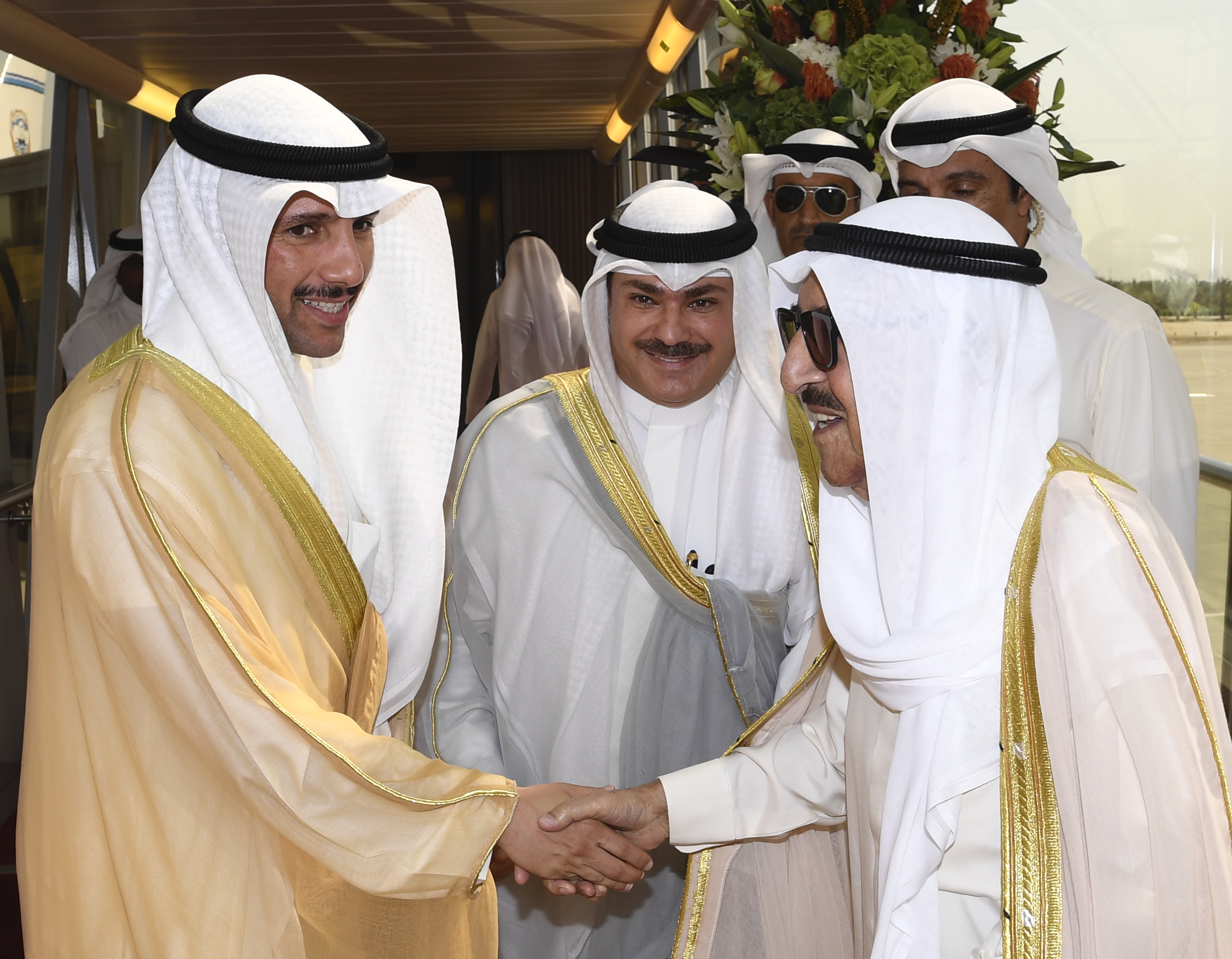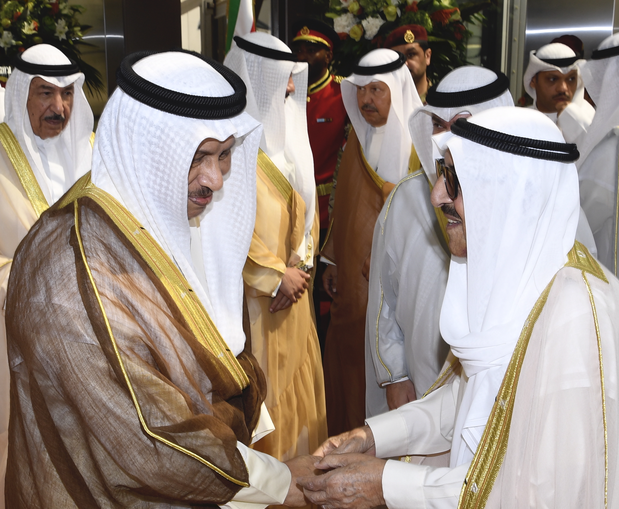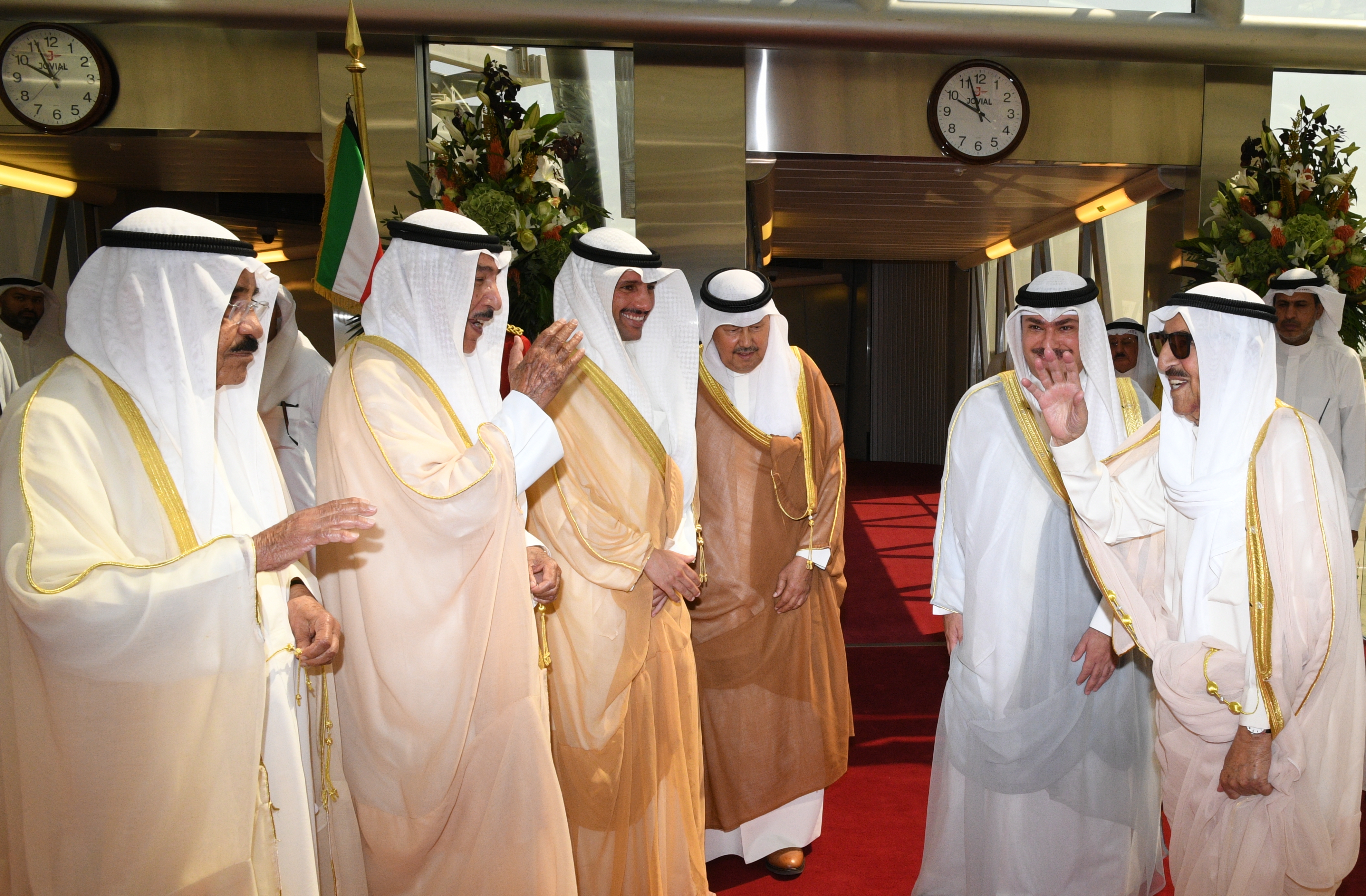 وقد كان في وداع سموه رعاه الله على أرض المطار سمو نائب الأمير وولي العهد الشيخ نواف الأحمد الجابر الصباح ومعالي رئيس مجلس الأمة مرزوق علي الغانم وسمو الشيخ جابر المبارك الحمد الصباح رئيس مجلس الوزراء وكبار المسؤولين بالدولة.