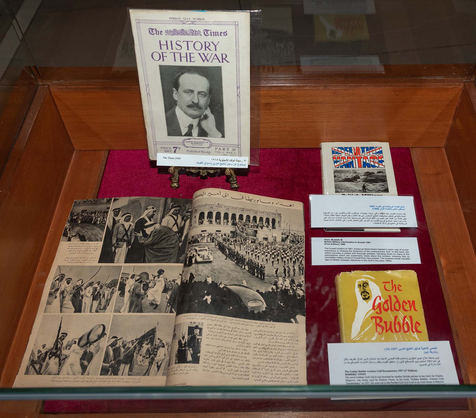 ويطرح المعرض للجمهور كتاب للرحالة جيمس بكنغهام ووليام بلغريف وتقارير تعود لعام 1903 خاصة بحاكم الهند ونائب الملك البريطاني اللورد كيرزون الذي زار الكويت كأكبر ممثل رسمي في تاريخ العلاقات المشتركة بين البلدين وتقارير صحفية تناولت الجوانب السياسية والاجتماعية والثقافية. (النهاية) ش ه د / م ص ع