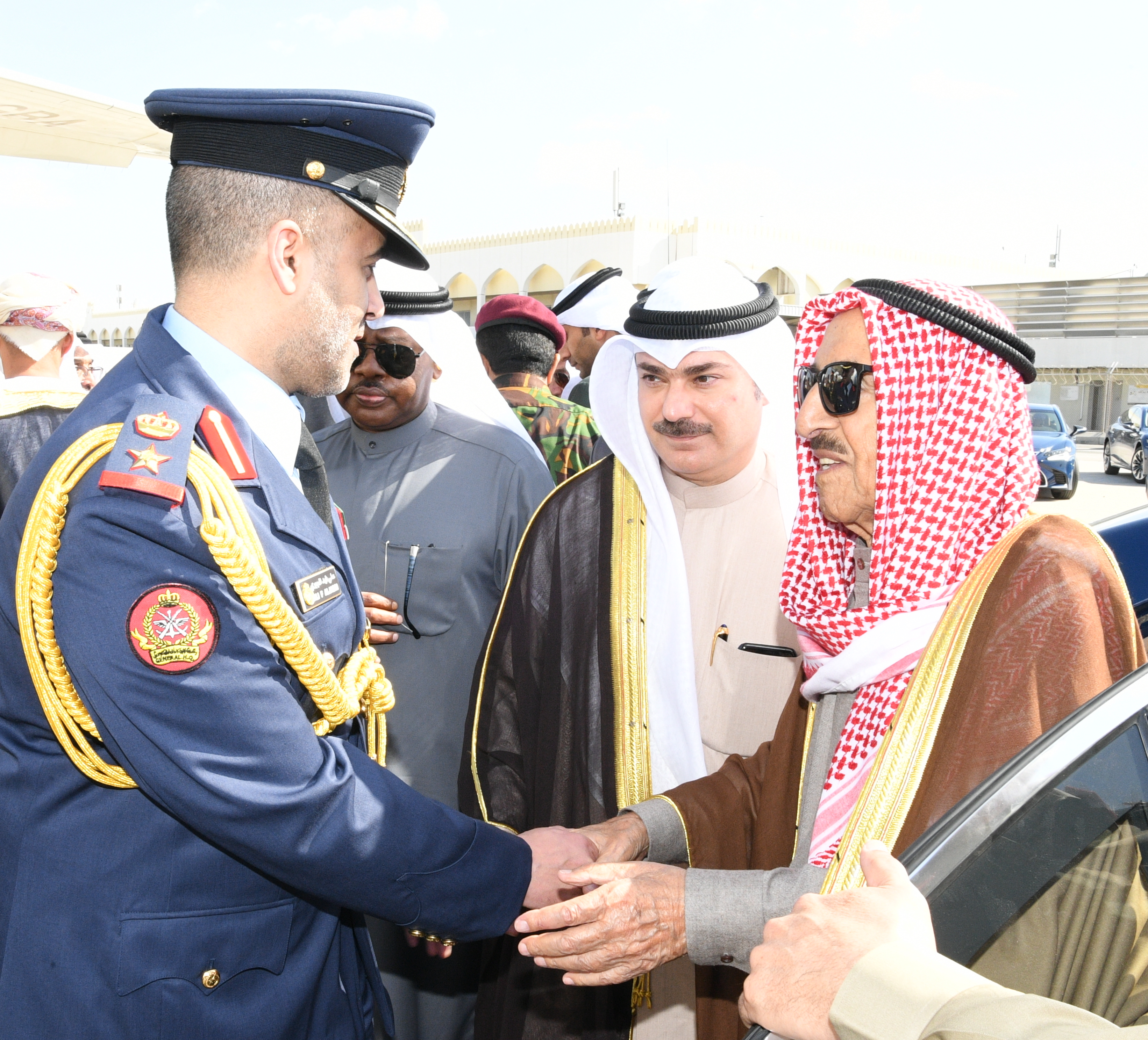 His Highness the Amir was seen off at the airport by Oman's Minister of Interior Humoud Bin Faisal Al-Busaidi, and Kuwait's Ambassador to Oman Sulaiman Abdullah Al-Harbi. (pickup previous)