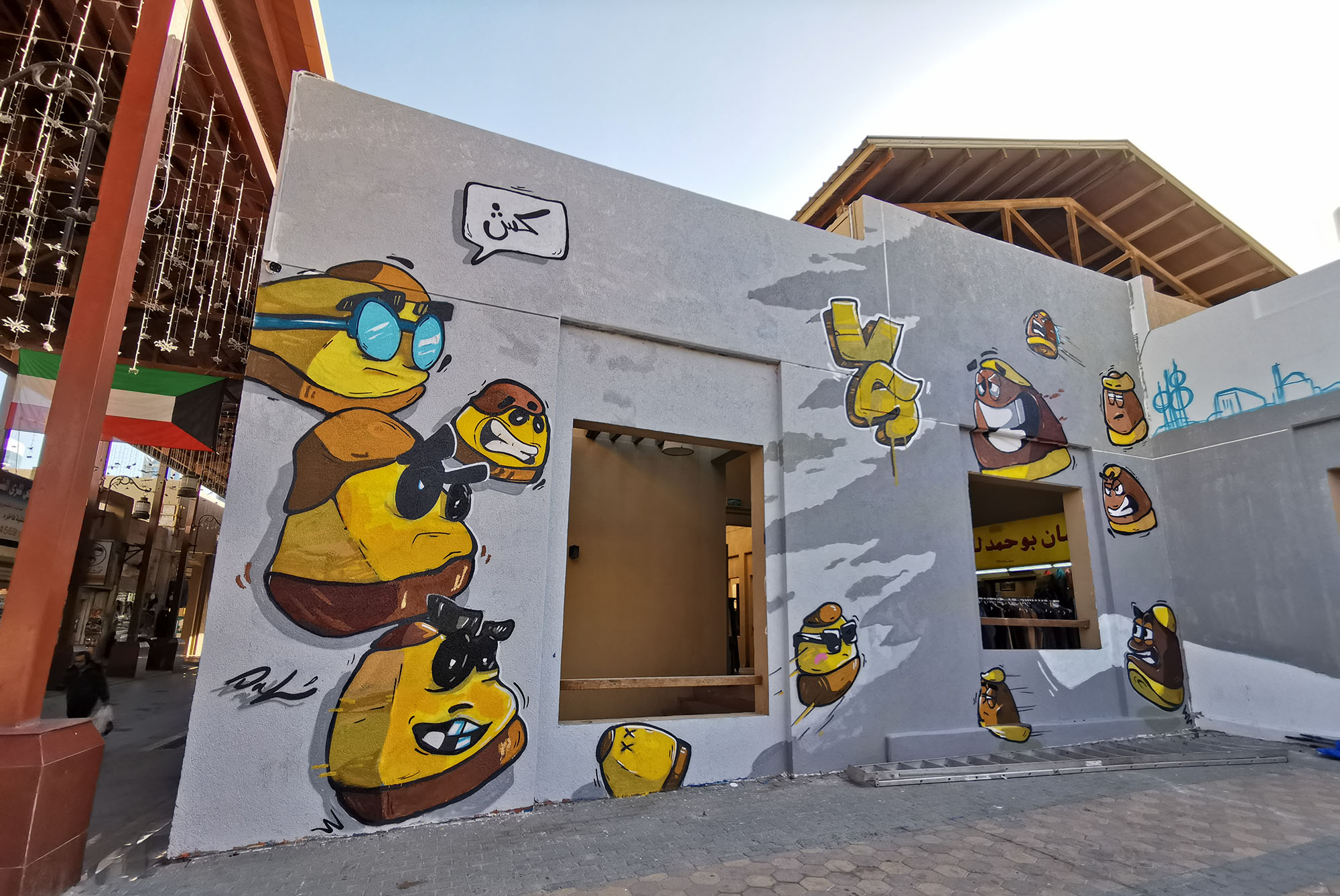 Kuwait main bazar adorned with graffiti