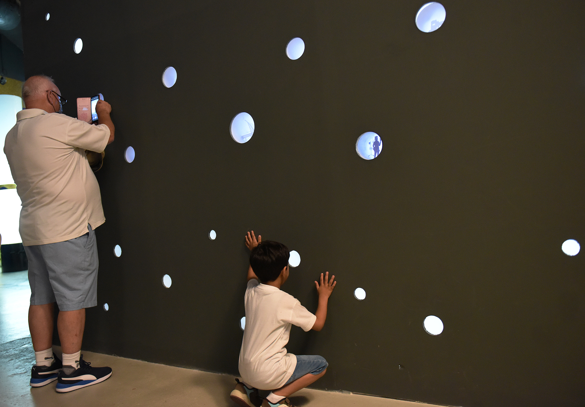 Visitors from different ages were able to see famous destinations in Kuwait throughout a huge screened wall with many small windows displaying different locations in Kuwait.