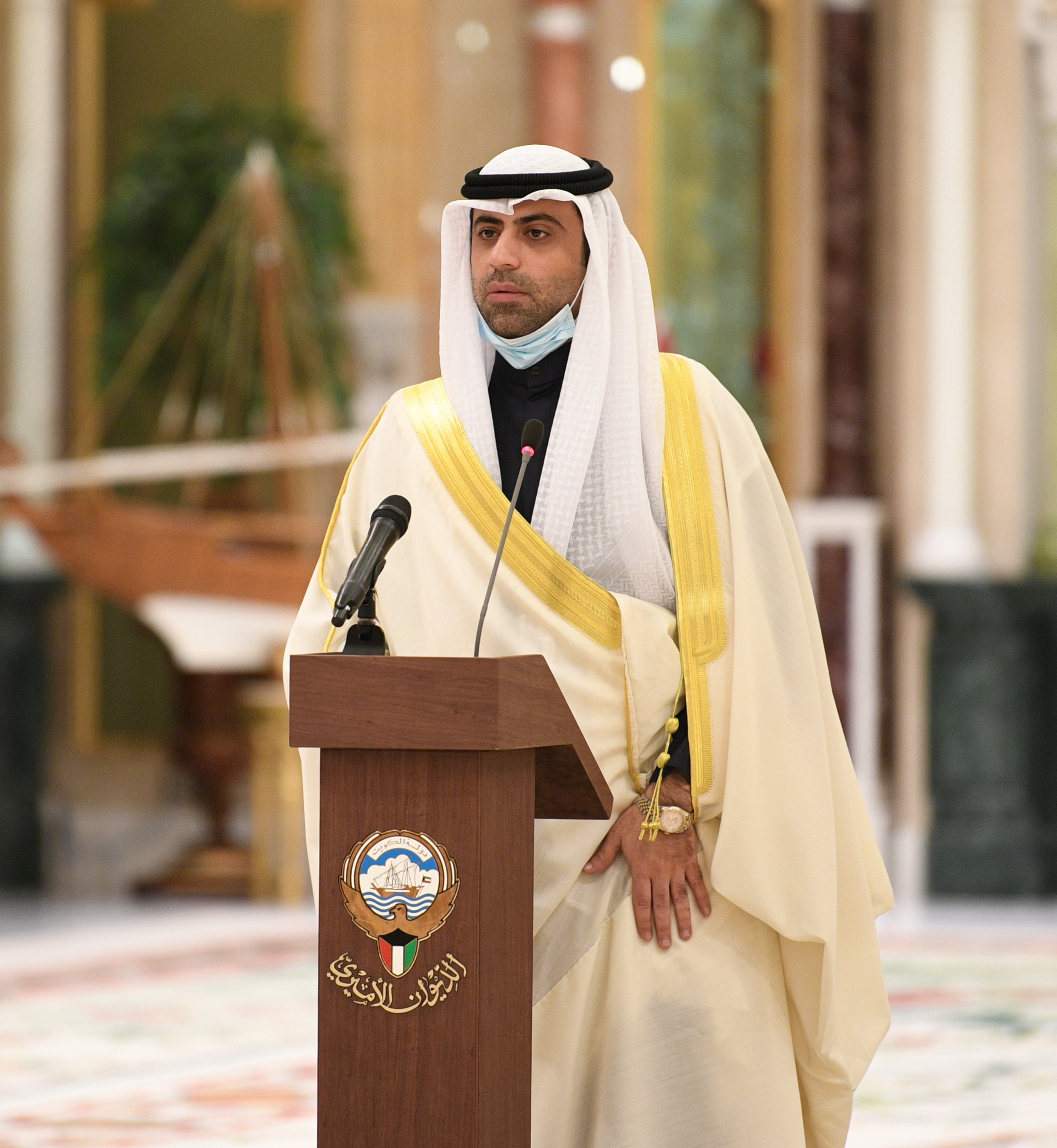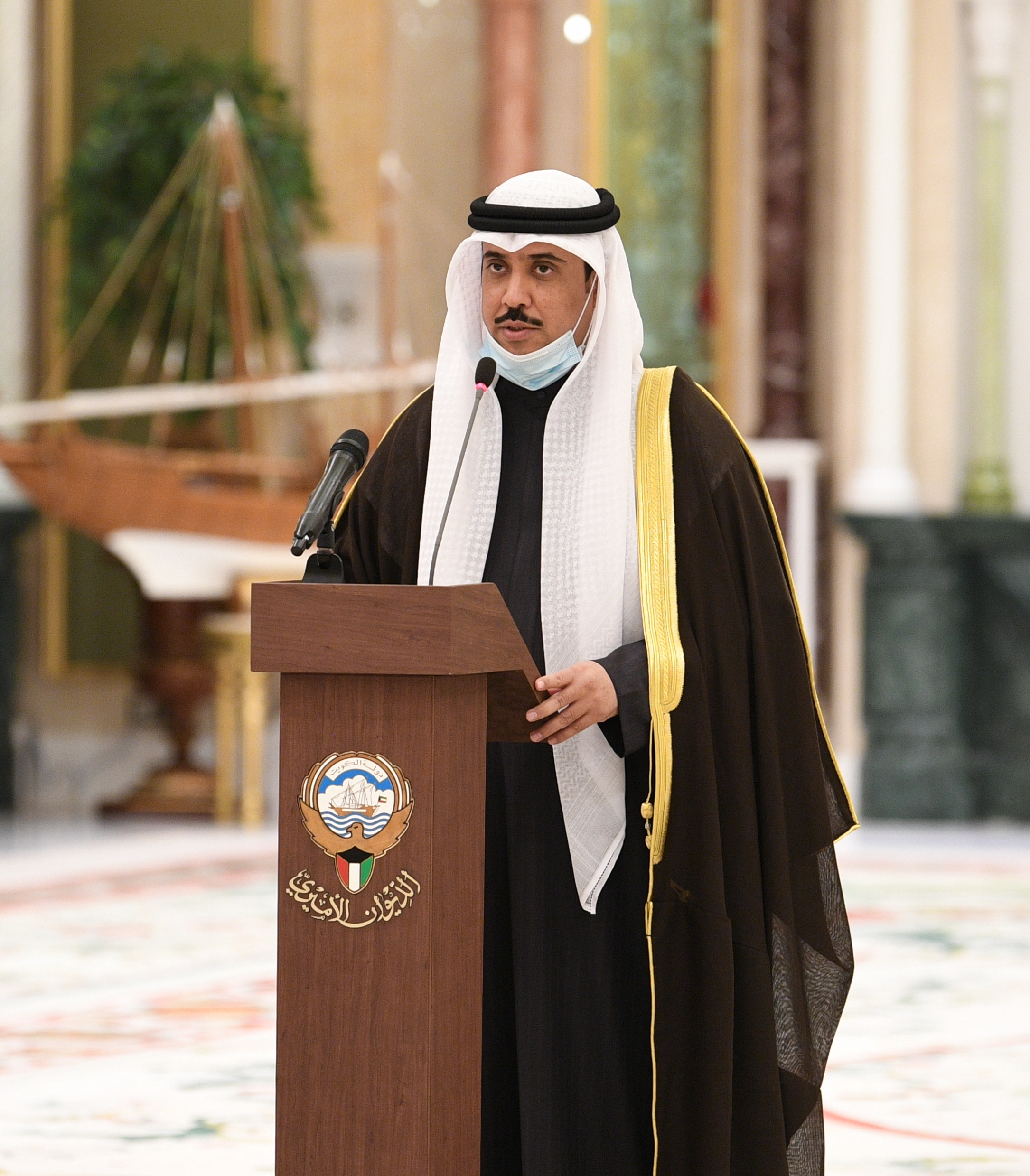 بالأصالة عن نفسي ونيابة عن أختي واخواني أعضاء مجلس الوزراء يطيب لنا أن نرفع أسمى آيات الشكر  والتقدير لسيدي حضرة صاحب السمو الشيخ نواف الأحمد الجابر الصباح أمير البلاد المفدى حفظه الله ورعاه.. وإلى سموكم الكريم على الثقة الغالية التي حملتمونا إياها نسأل الله العلي القدير أن يعيننا على تحمل المسؤولية وأعبائها وترجمة كل التوجيهات السامية.
