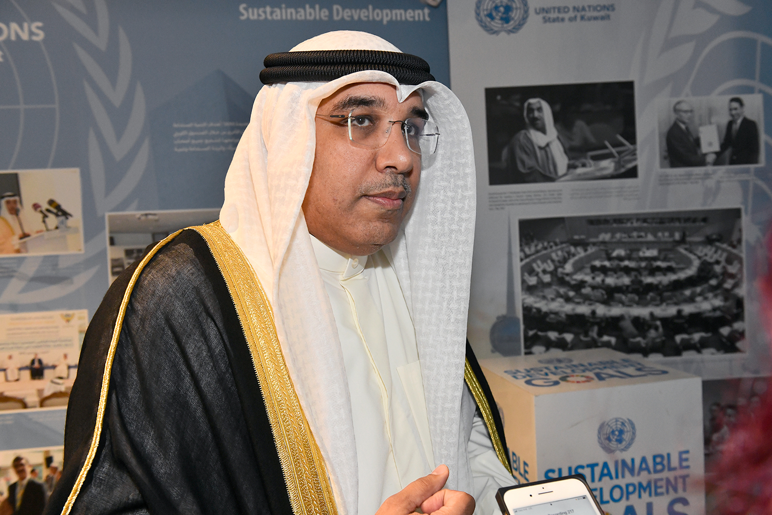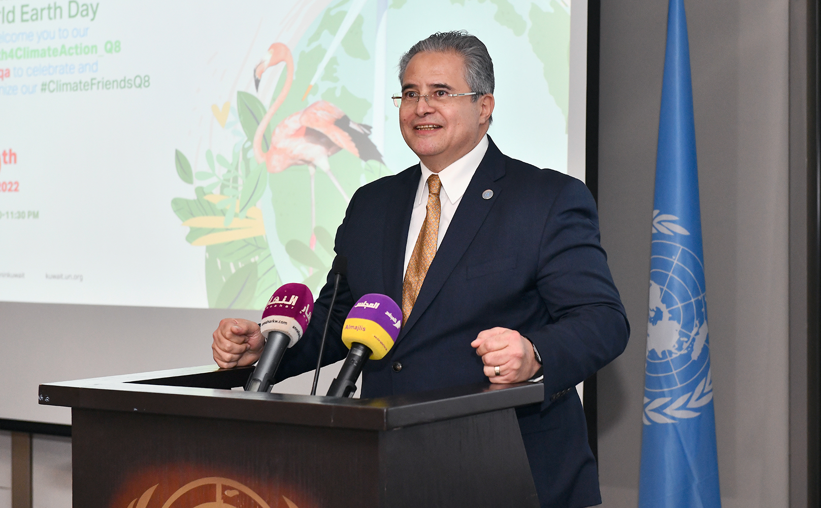وأعرب عن سعادته بالمشاركة ممثلا لوزير الشيخ الدكتور احمد ناصر المحمد الصباح في رعاية هذا الحفل وبجهود مكتب الأمم المتحدة لدى البلاد في دعمه للشباب الكويتي ودعمه للعلاقة الاستراتيجية بين دولة الكويت والأمم المتحدة.