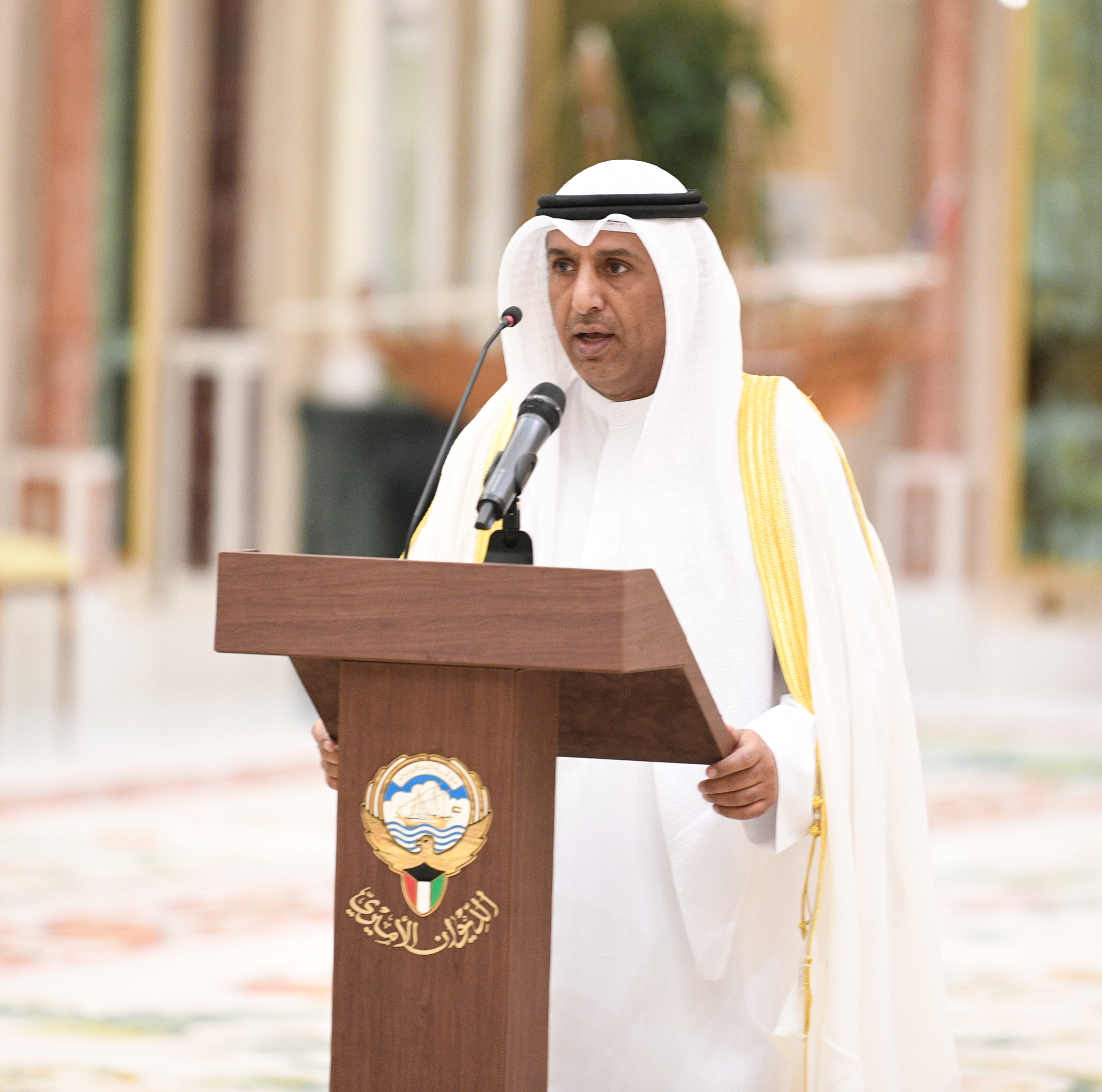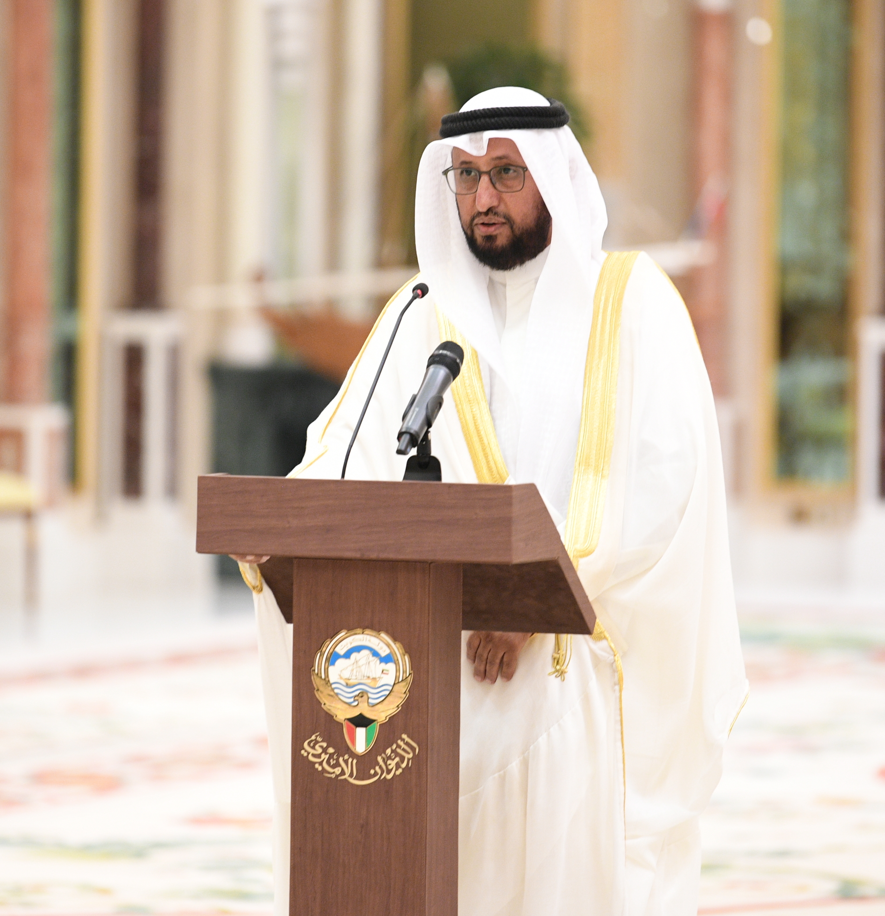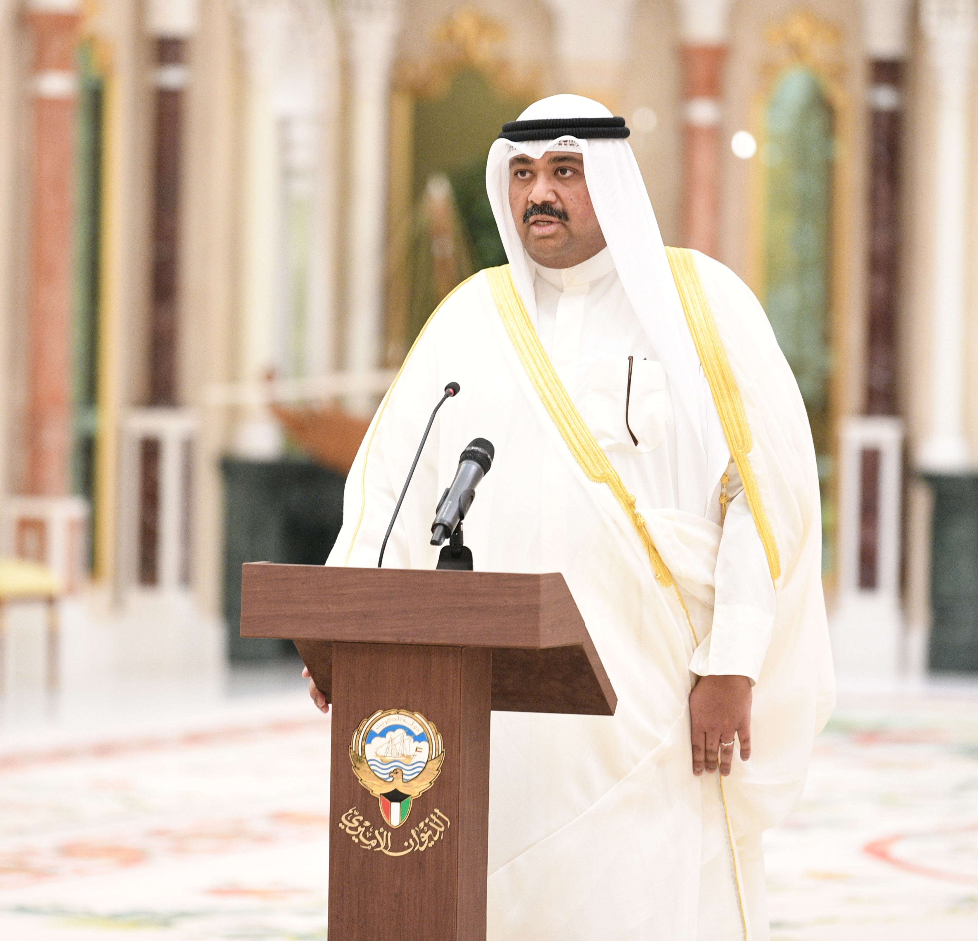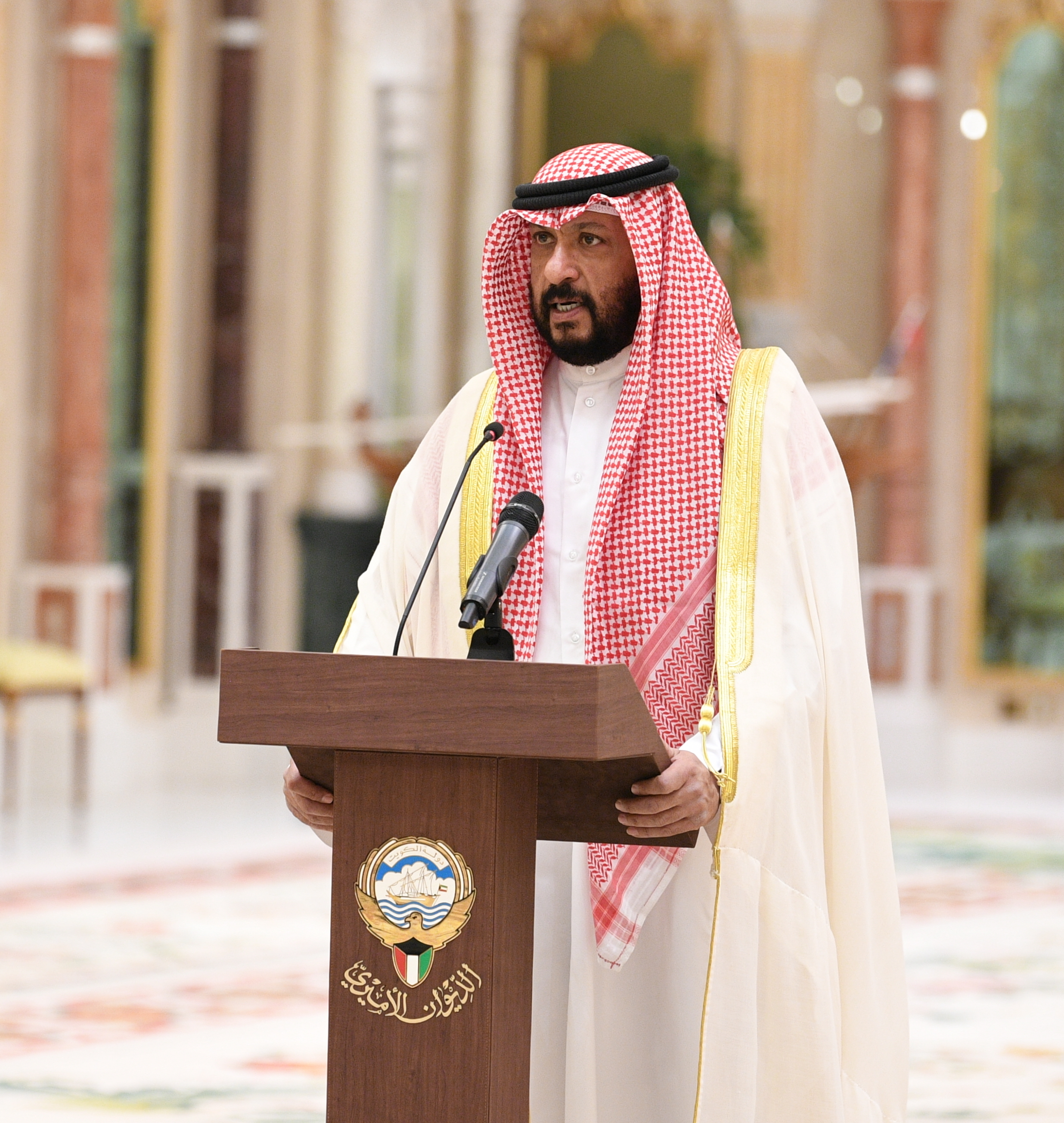 في البداية - وقد أديتم اليمين الدستورية - يسرني أن أنقل لكم تحيات حضرة صاحب السمو أمير البلاد المفدى الشيخ نواف الأحمد الجابر الصباح (حفظه الله ورعاه) وأنعم عليه بالصحة والعافية.. وتهاني سموه وتهانينا لكم باختياركم للوزارة مؤكدين أن توليكم هذه المناصب أمانة ارتضيتم حملها أمام الله وأمام شعب وطننا العزيز داعين الله في علاه أن يوفقكم جميعا إلى ما يحبه ويرضاه وإلى ما فيه خير وصلاح البلاد والعباد مقدرين ما قدمه إخوانكم الوزراء السابقون من جهود مخلصة أثناء أداء مسؤولياتهم.