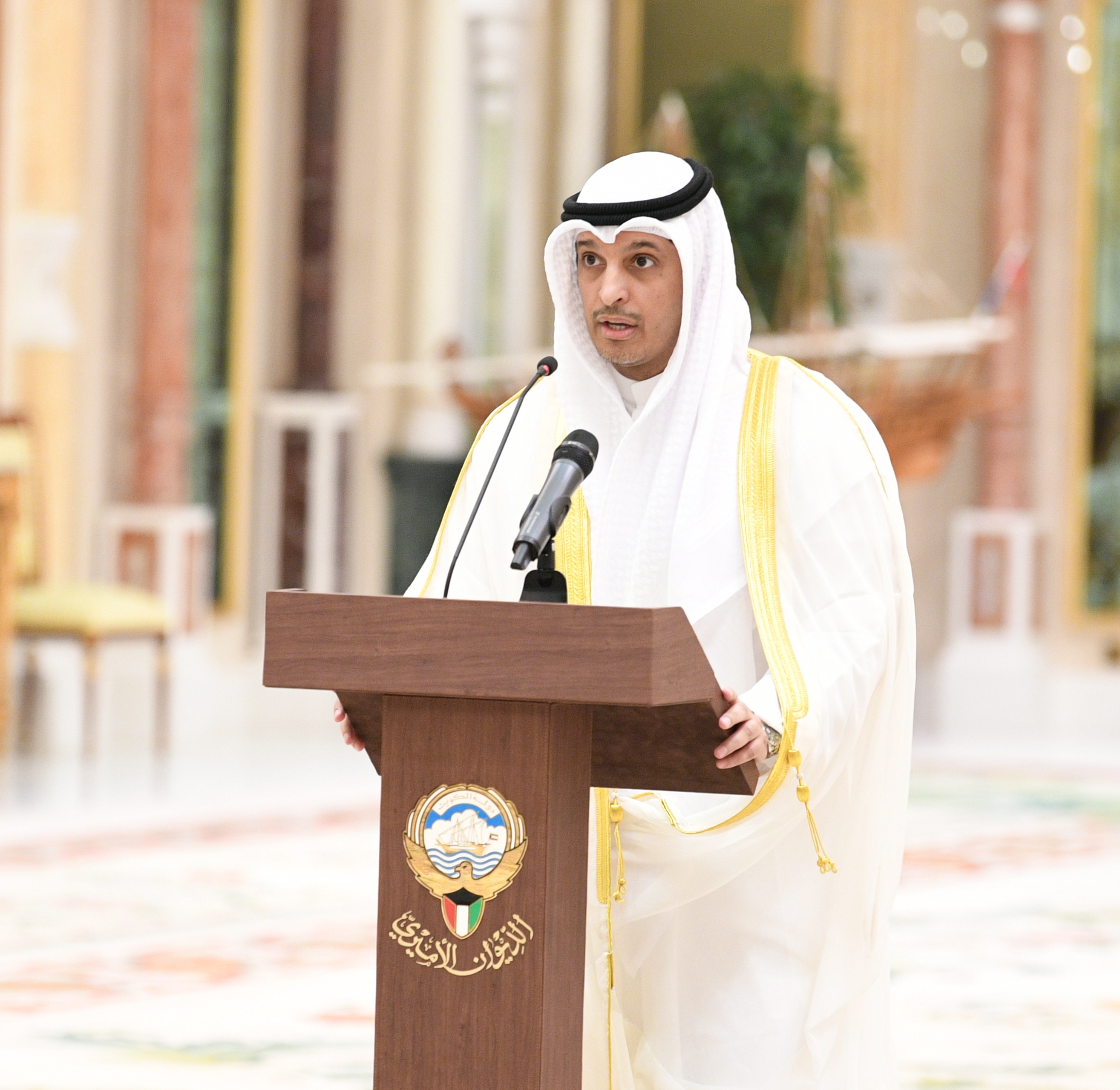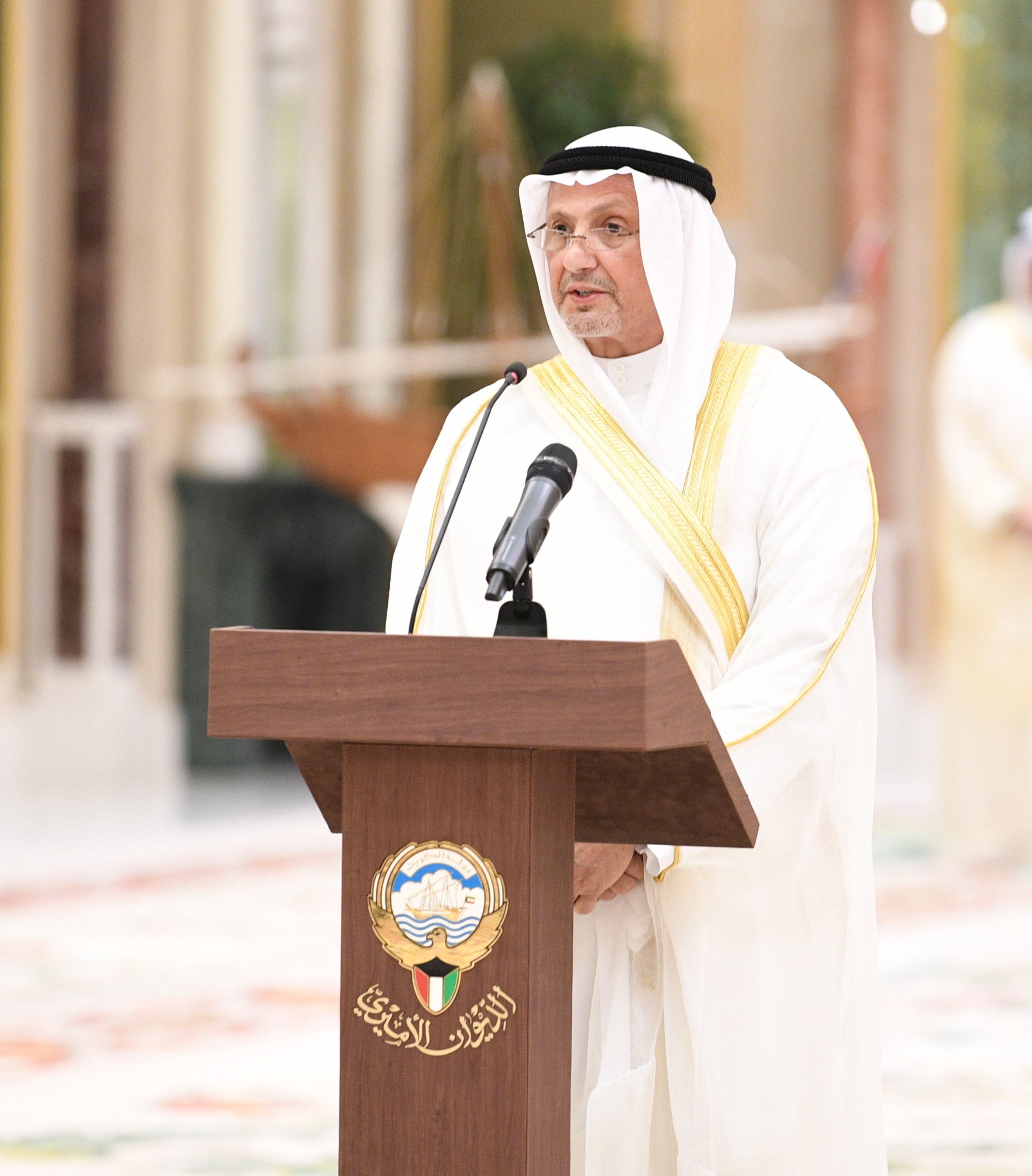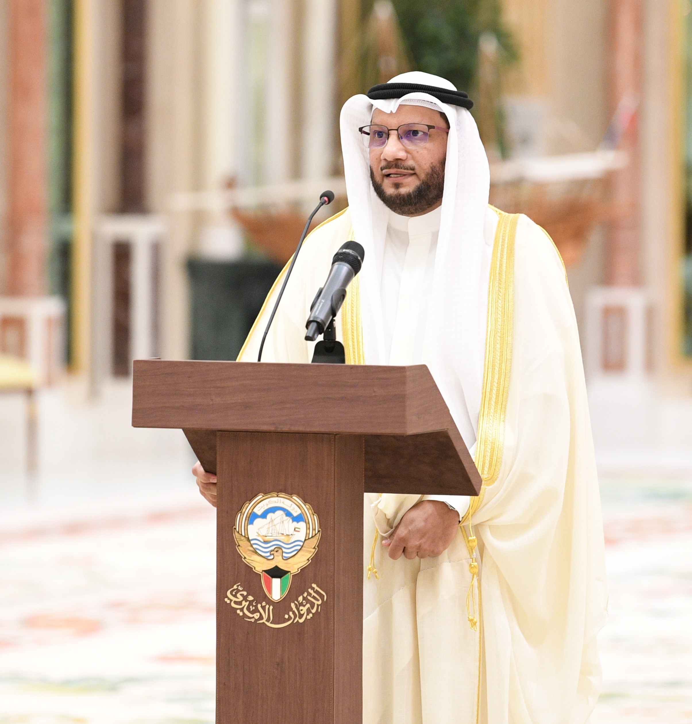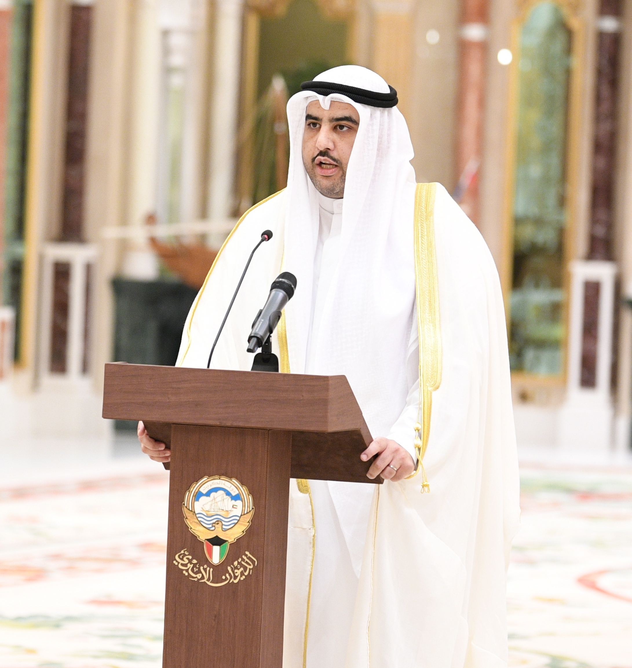 في البداية - وقد أديتم اليمين الدستورية - يسرني أن أنقل لكم تحيات حضرة صاحب السمو أمير البلاد المفدى الشيخ نواف الأحمد الجابر الصباح (حفظه الله ورعاه) وأنعم عليه بالصحة والعافية.. وتهاني سموه وتهانينا لكم باختياركم للوزارة مؤكدين أن توليكم هذه المناصب أمانة ارتضيتم حملها أمام الله وأمام شعب وطننا العزيز داعين الله في علاه أن يوفقكم جميعا إلى ما يحبه ويرضاه وإلى ما فيه خير وصلاح البلاد والعباد مقدرين ما قدمه إخوانكم الوزراء السابقون من جهود مخلصة أثناء أداء مسؤولياتهم.