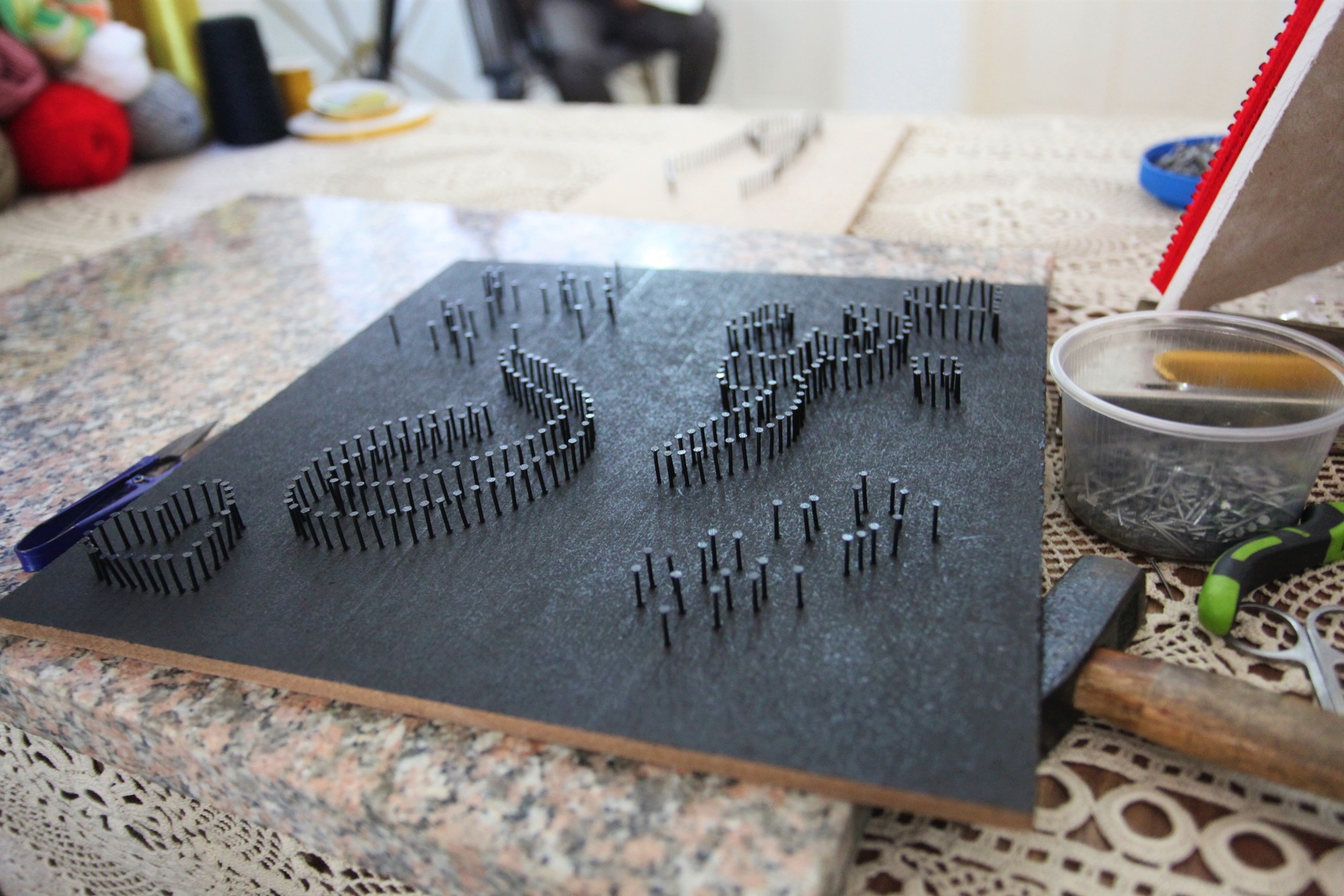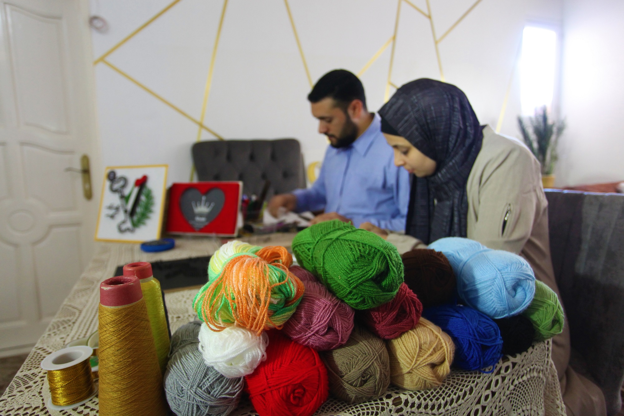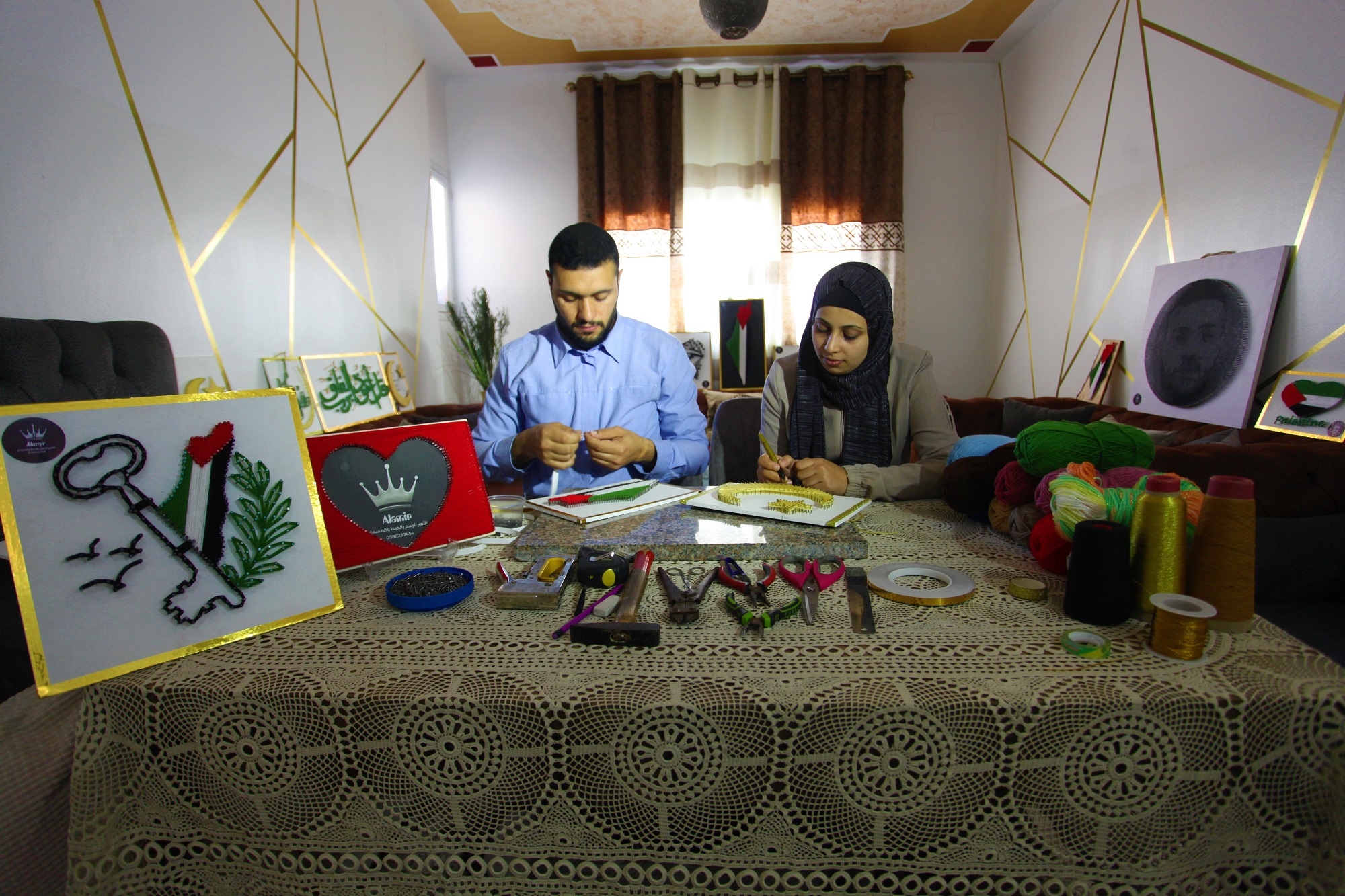 Gazan couple create philography art out of wool threads, nails