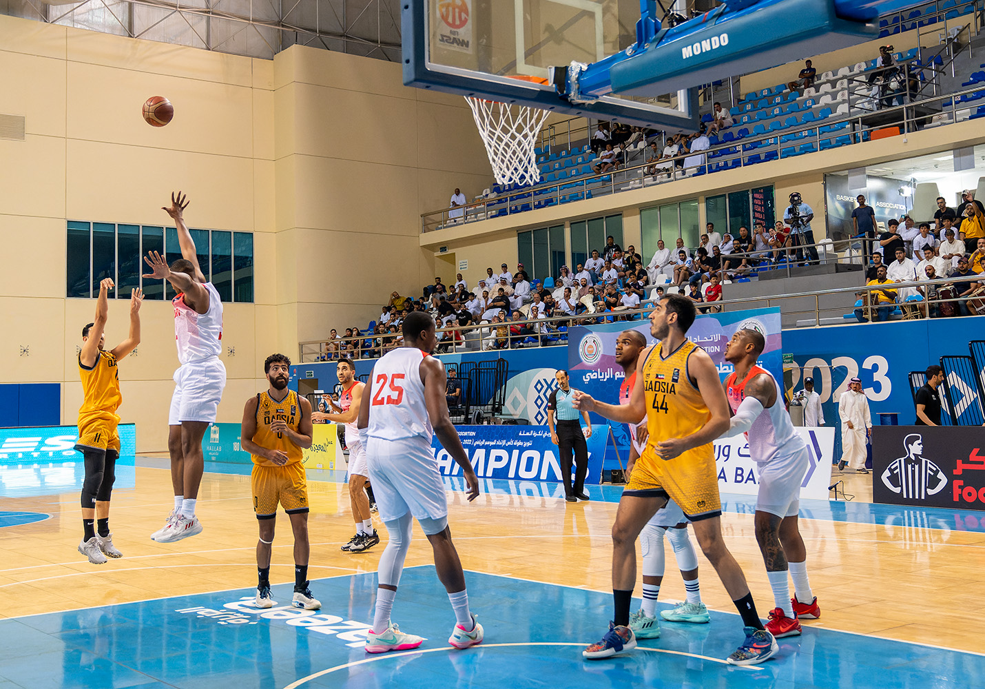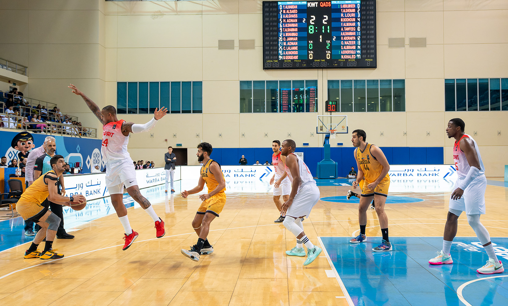 وجاء الشوط الأول من المباراة التي أقيمت على صالة الاتحاد المحلي في مجمع الشيخ سعد العبدالله الرياضي للصالات المغطاة قوية من الجانبين إذ تبادل الفريقان التقدم وأنهاه القادسية بنتيجة (45- 44).