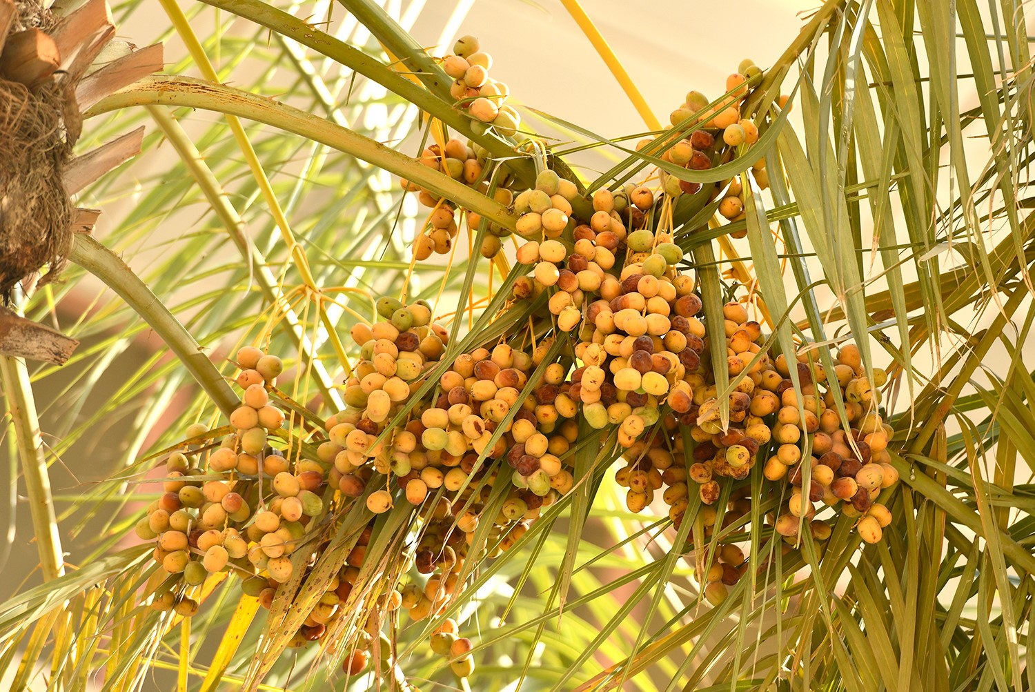 Un palmier porte environ 10 à 15 troncs dont le poids de chacun peut atteindre 20 kilogrammes, ce qui signifie que chaque palmier donne environ 200 à 300 kilogrammes de dattes.