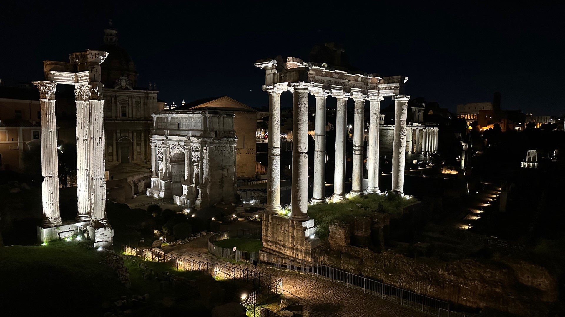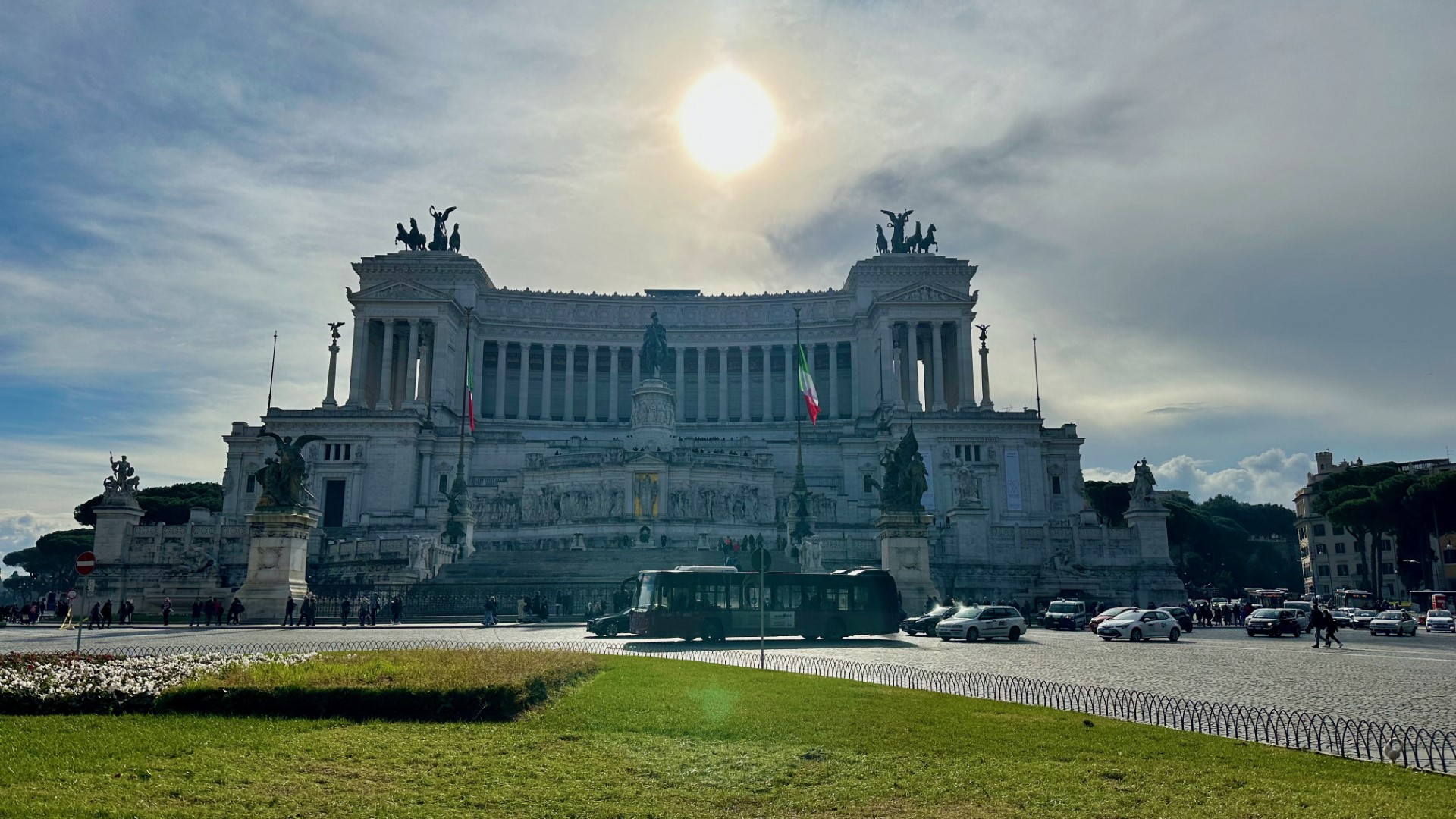From the south is Via dei Fori Imperiali, leading to the Colosseum, while Teatro Marcello street leading to Piazza del Campidoglio, the city's government headquarters.