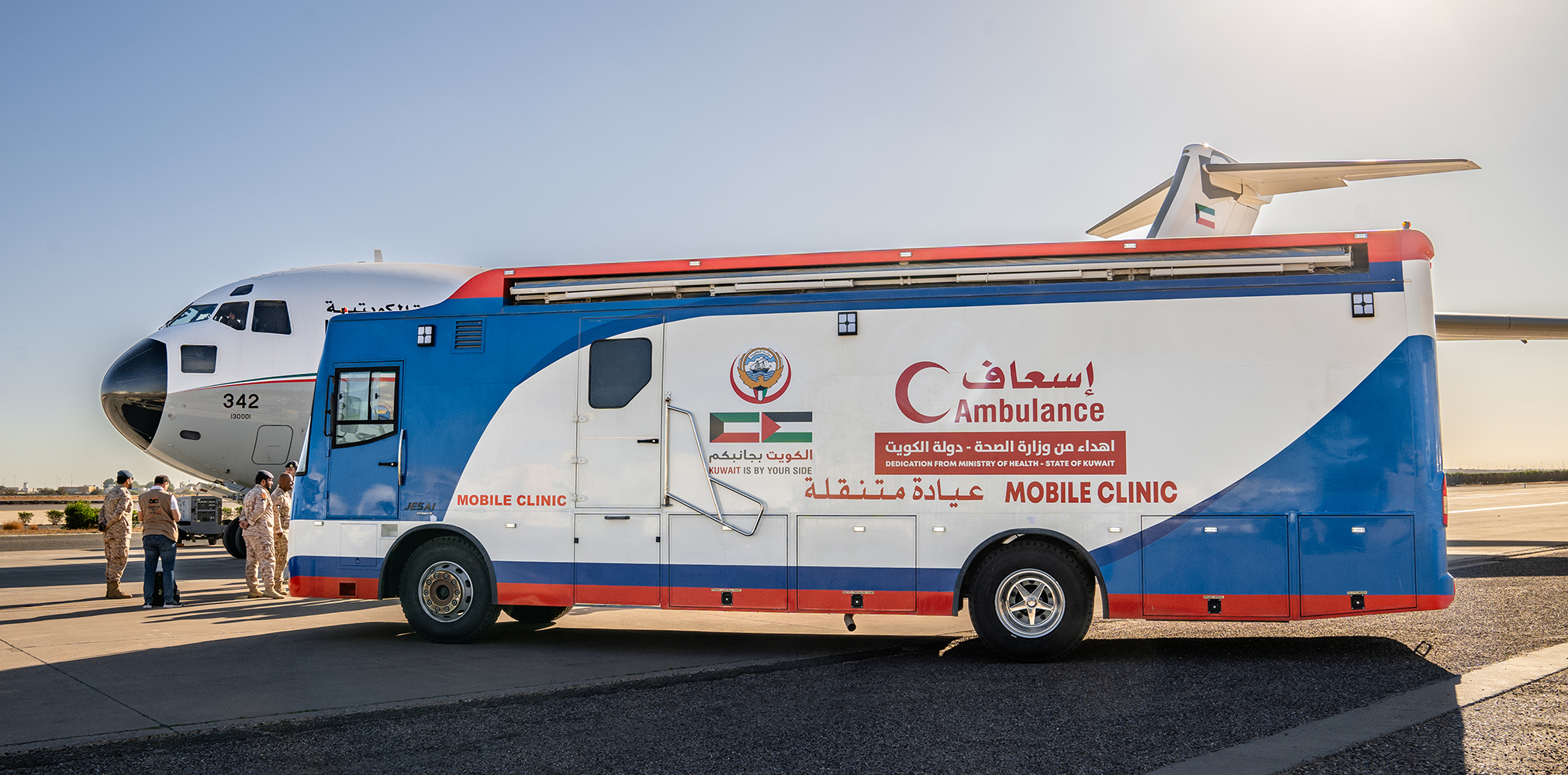 من ناحيته أكد المدير العام للجمعية الكويتية للإغاثة عبدالعزيز العبيد لـ(كونا) أن الرحلة الإغاثية الـ 26 المزودة بـ 8 سيارات إسعاف تأتي بشراكة وتعاون مع وزارة الصحة الكويتية لما تعانيه الطواقم الطبية والفنية في قطاع غزة في من انهيار ونقص شديد بالمعدات.
