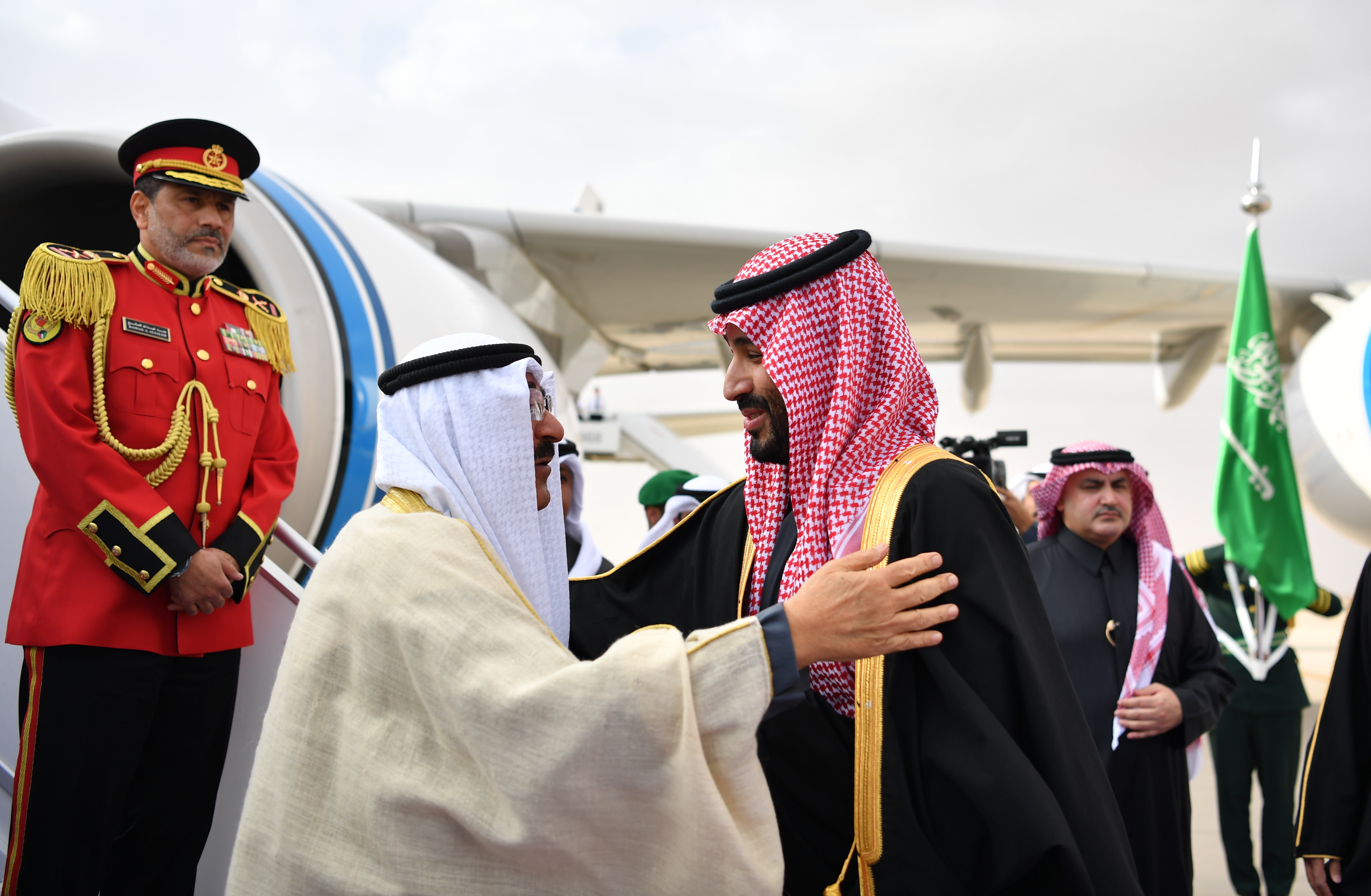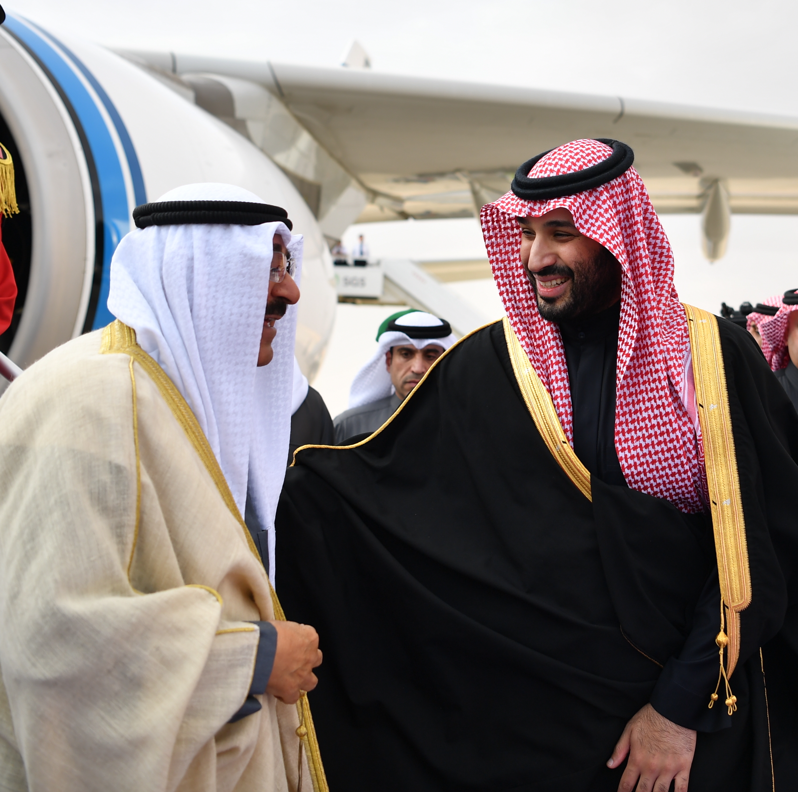His Highness the Amir was received by Saudi Crown Prince Mohammad bin Salman Al-Saud.